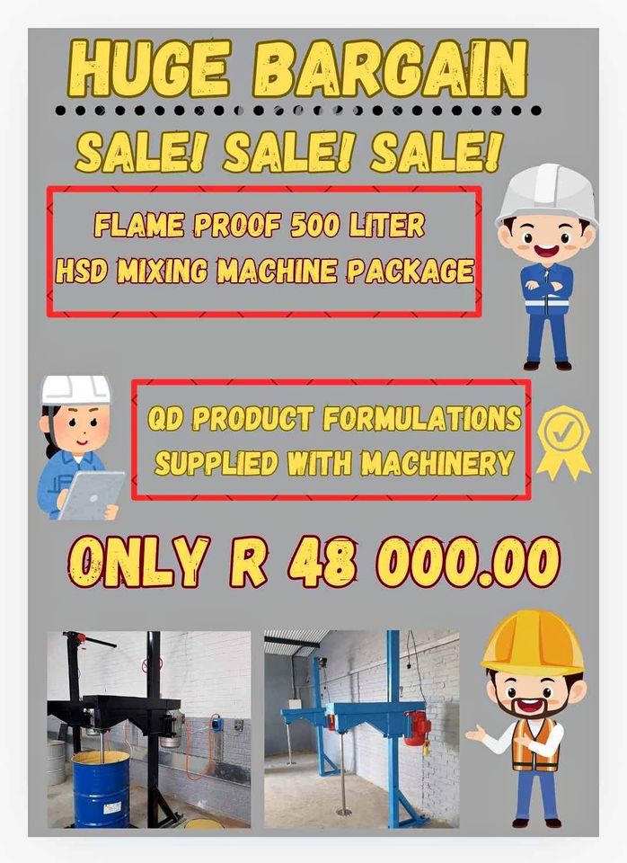 Flameproof HSD Mixing machine in stock for sale. Contact for viewing. Qd formulations gets suppleid with machine. Step by Step Training can be arranged