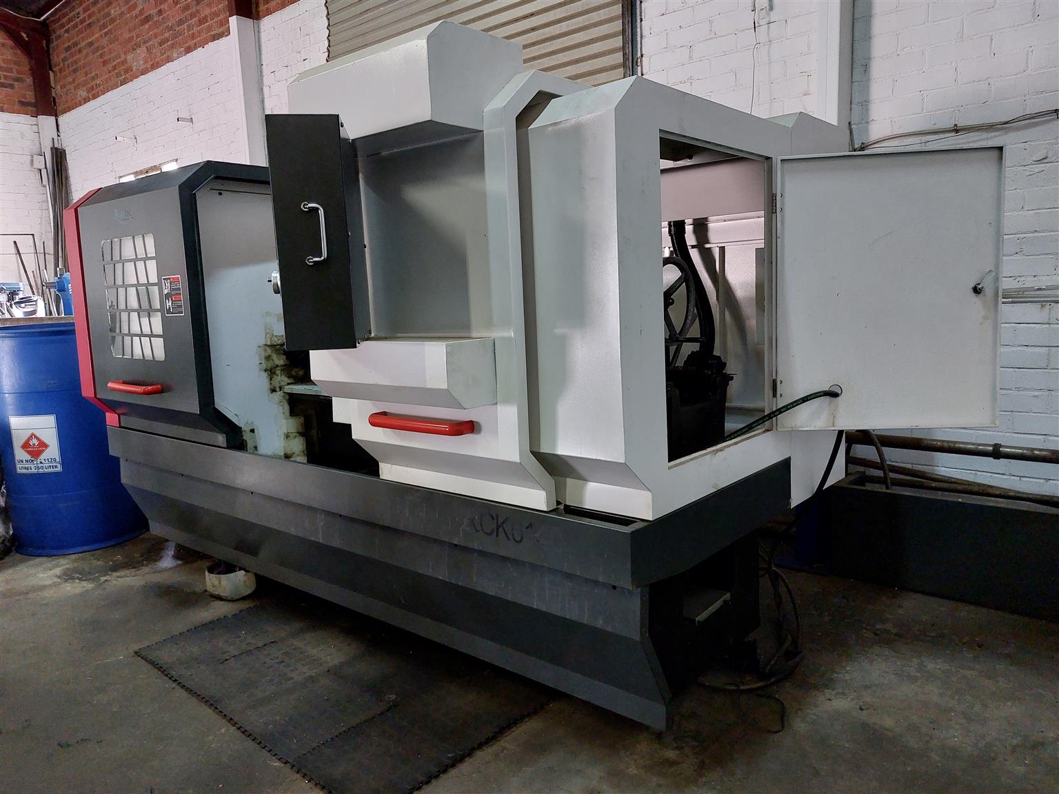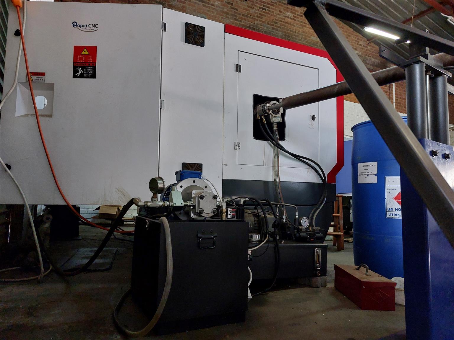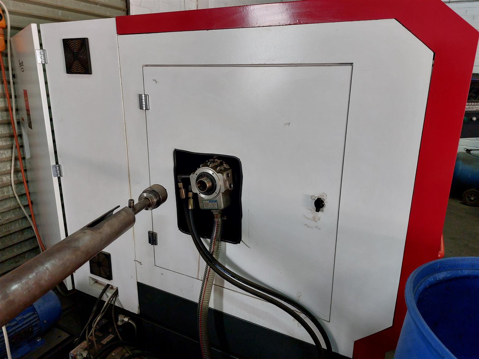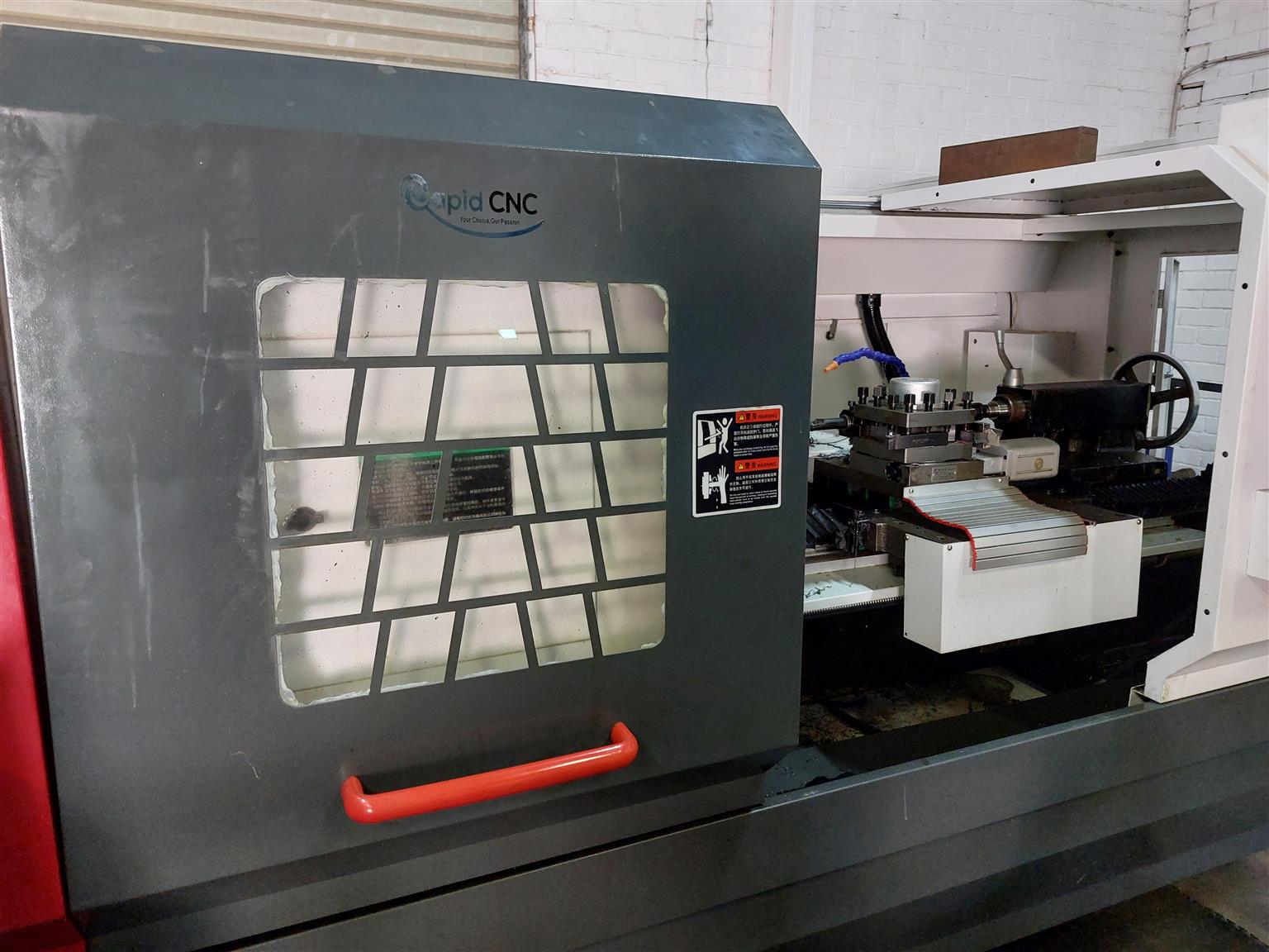 Rapid CNC machine 3 axis machine with GSK980TB3i controller. 200mm hydraulic chuck, 1000mm work piece length, linear rails on all axis'. Great for thread whirling, multi start threads, or any job where you want to control the chuck.
