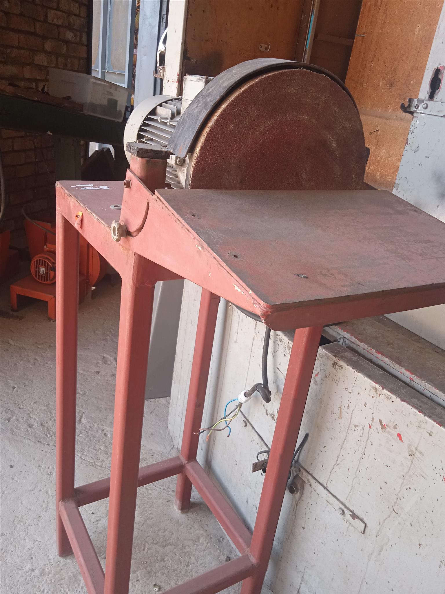 Disk sander for sale.Disk sander with an adjustable table for sale. 380 volt. Selling at R2800. Please contact us for more information.