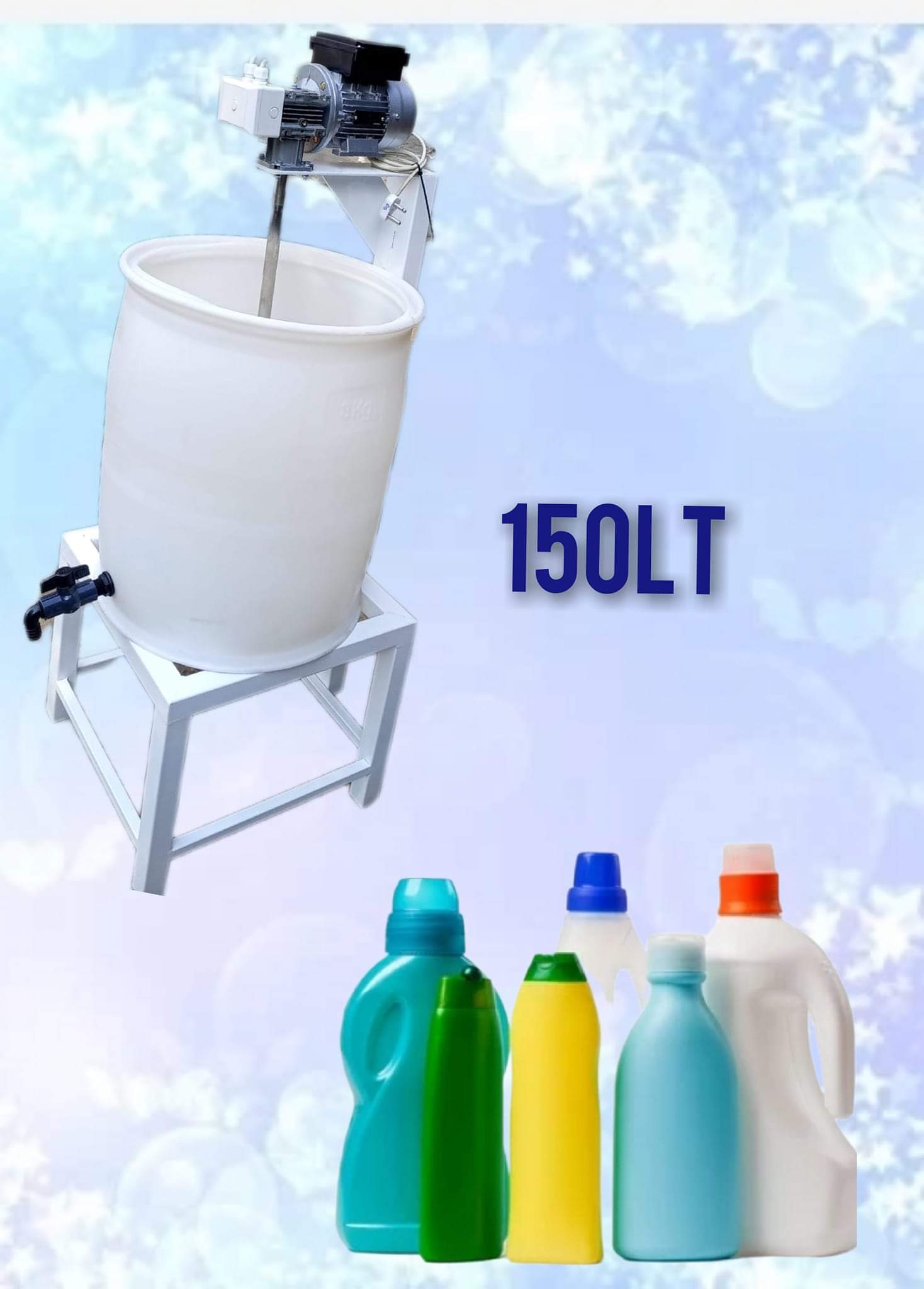150 liter detergent mixing machine, industrial unit, stainless steel shaft and mixing blades, includes formulation to manufacture 40 detergent products with details of suppliers for raw materials, or can be used for any other liquid products, , locally manufactured, countrywide and export delivery, full backup.