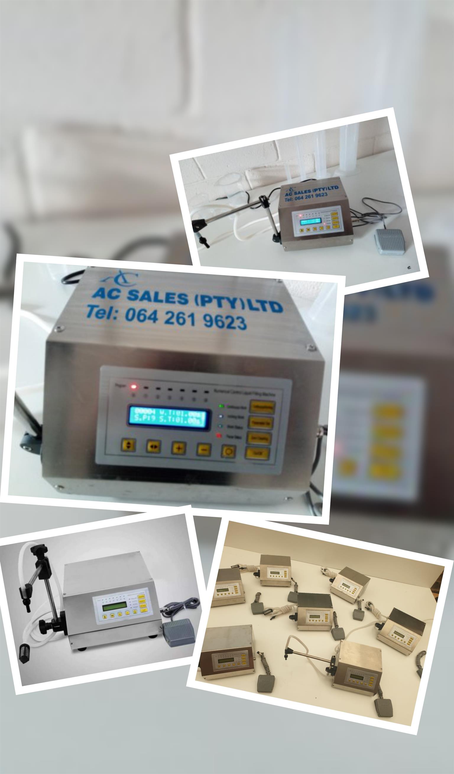 Digital filling machine, 220 volts, table top, no compressor required, for filling of thin liquids only, 6 program settings, semi automatic cycle or foot operated, batch counter, non drip nozzel, self priming from ground level-connects directly to your holding tank, fill speed at 3,2 litres per minute, unbelievable machine, WhatsApp for a full demo video