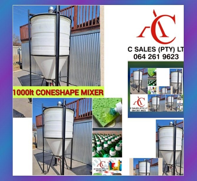 Cone shape detergent mixing machine, very good condition with speed control, come shape for easier draining of products, TEL , free formulation book for over 40 products
