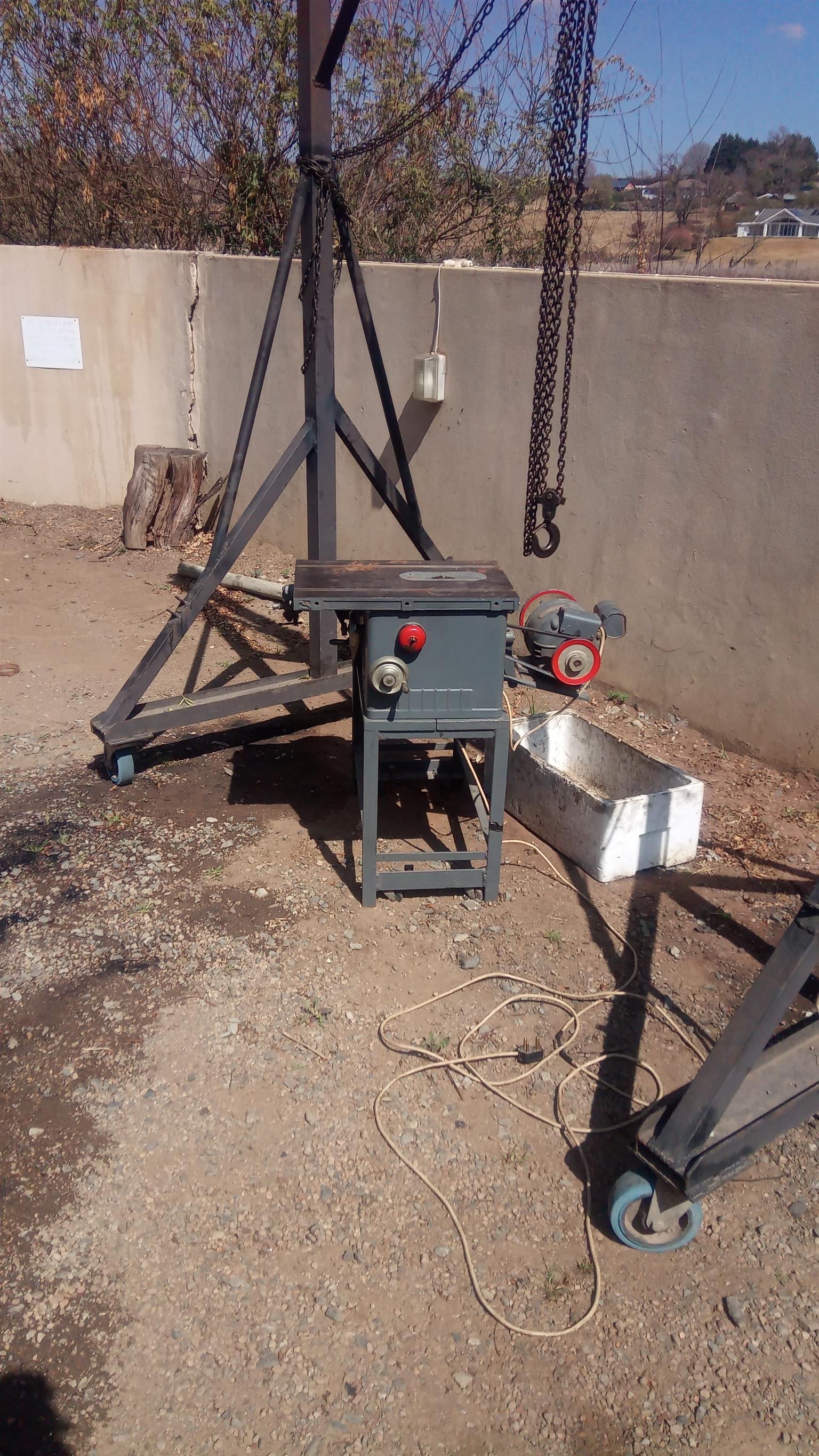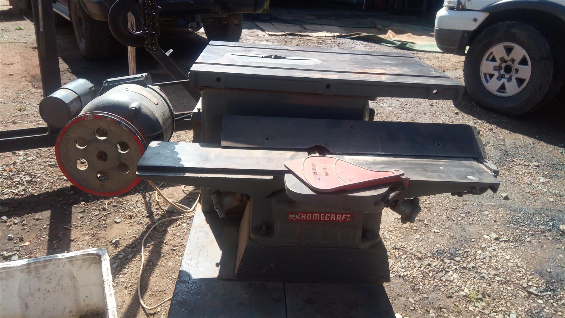 Used saw bench with planer. Cast iron construction. Belt driven. Spare blades. All guides and slides available. 220 volt motor. Ideal for carpenter, school technical shop, home use.