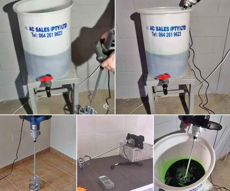 Please call/WhatsApp for demo video Hand held detergent mixer for up to litre batches Suitable for detergents, mix 50 litre batches, includes speed control, free formulation book 220-volt, countrywide delivery, in stock, immediate delivery.