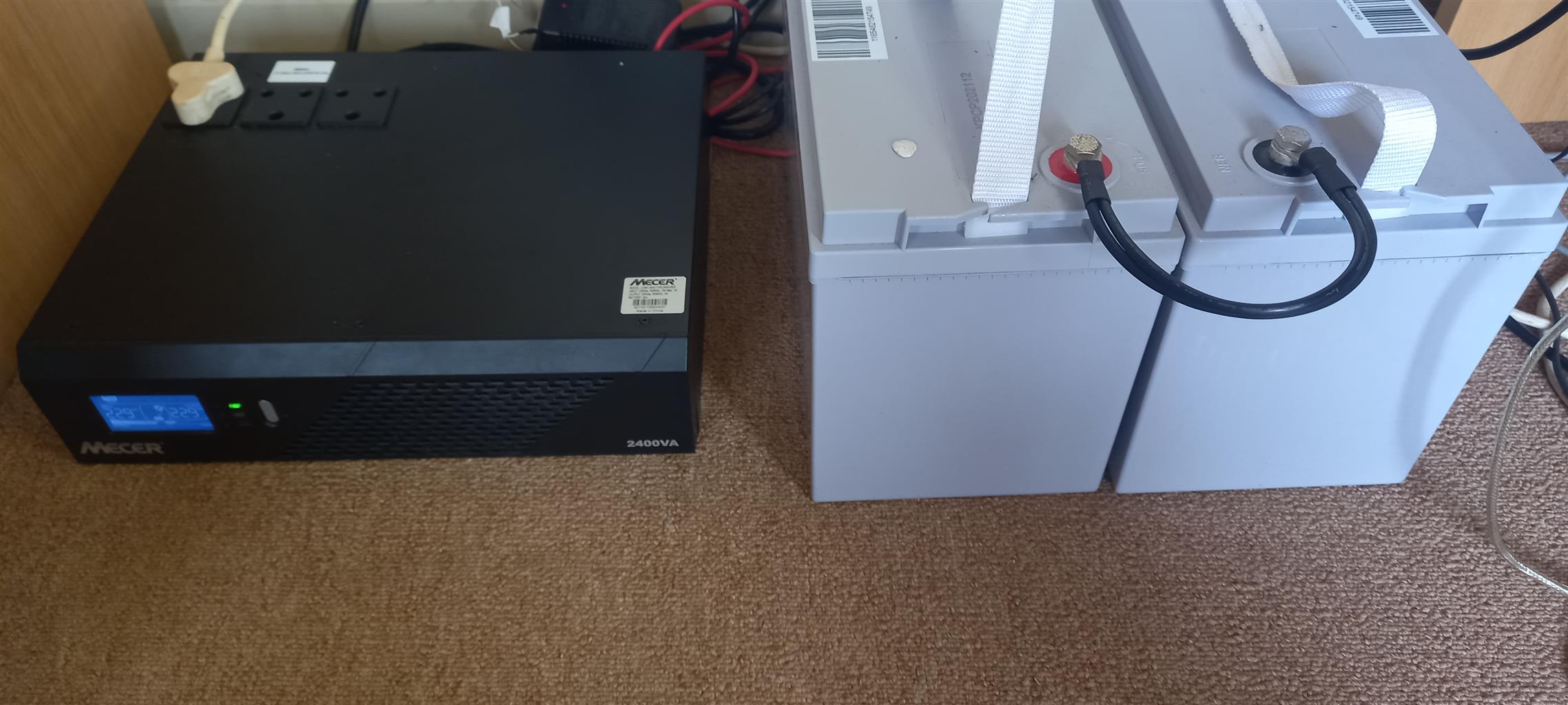 Mecer Invertor 1440w with two 100 ah Deep Cell Batteries. Not even 2 years old. Great for loadshedding. Powers up TV, dstv,Internet and lights.