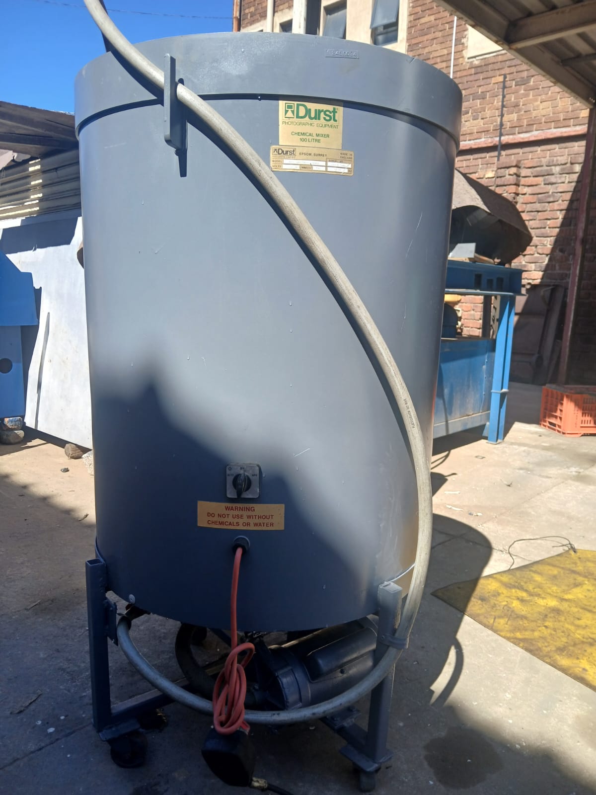 Chemical mixing tank, pvc, Durst, 100 liter, complete with circulating pump 220V. Please phone 082 7533659view more.