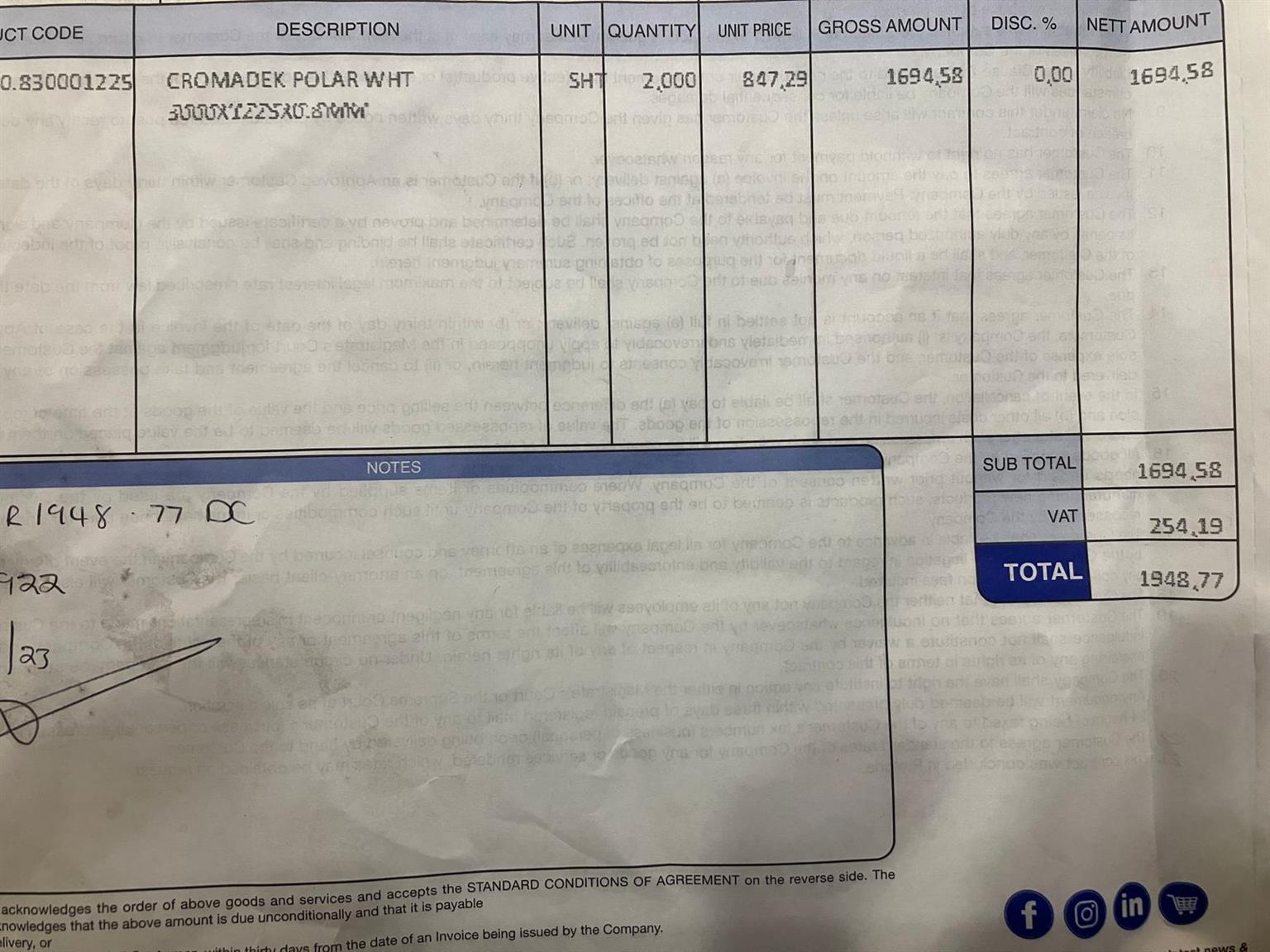 Chromadek sheets for signage available, the 2 sheets were purchased for a signage project but were never used. They measure 3000mm x 1225mm x 0.8mm, polar white. Original price of purchase is R1900, looking for R1000 for both.