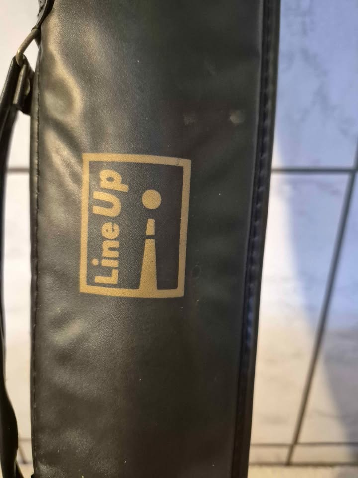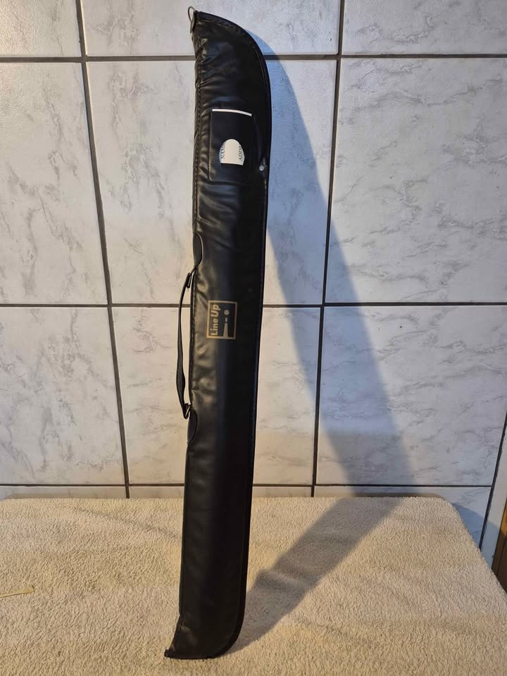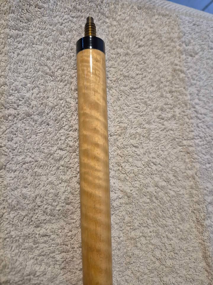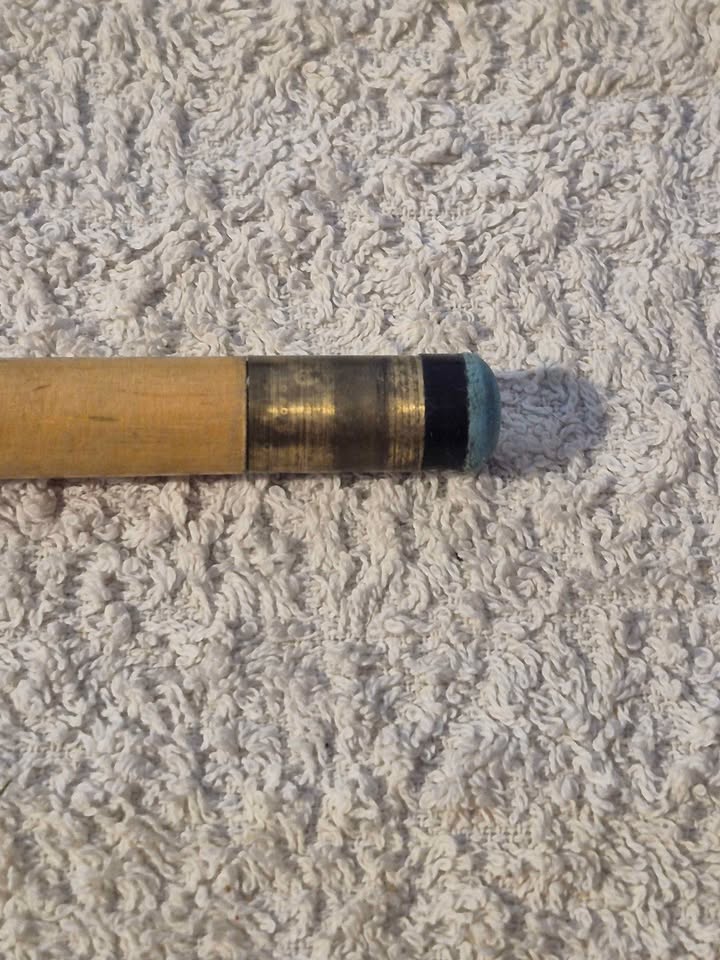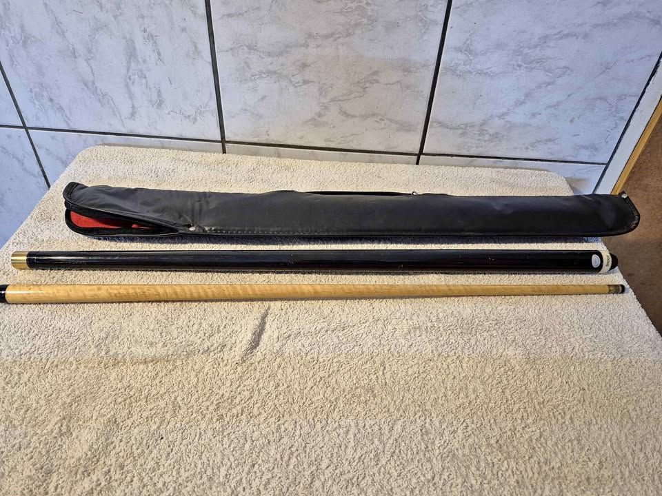 a two-piece pool cue and its black carrying case