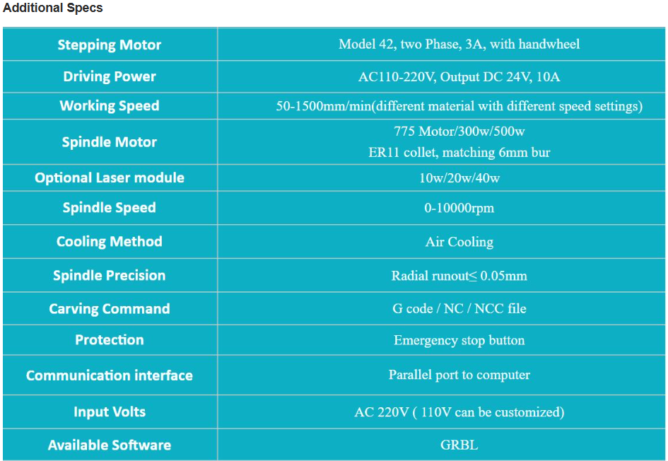 Bought new and never used due to workload on other machinery. Extra collets and bits bought included. All original booklets and packaging available. See pictures for specifications. R15 000 onco.
