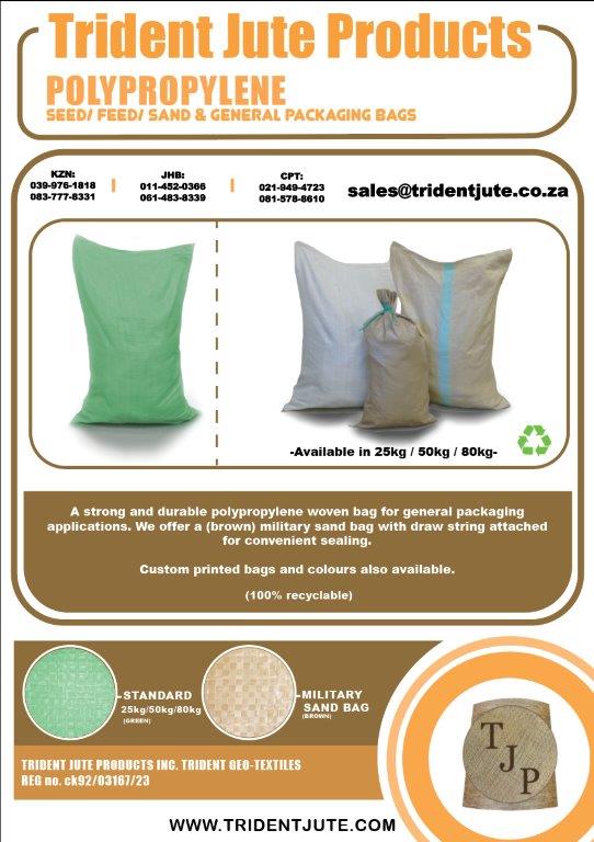 POLYPROPYLENE BAGS AVAILABLE TO ORDERCONTACT: sales@tridentjute.co.zaview email...Tel: 0681463826view more