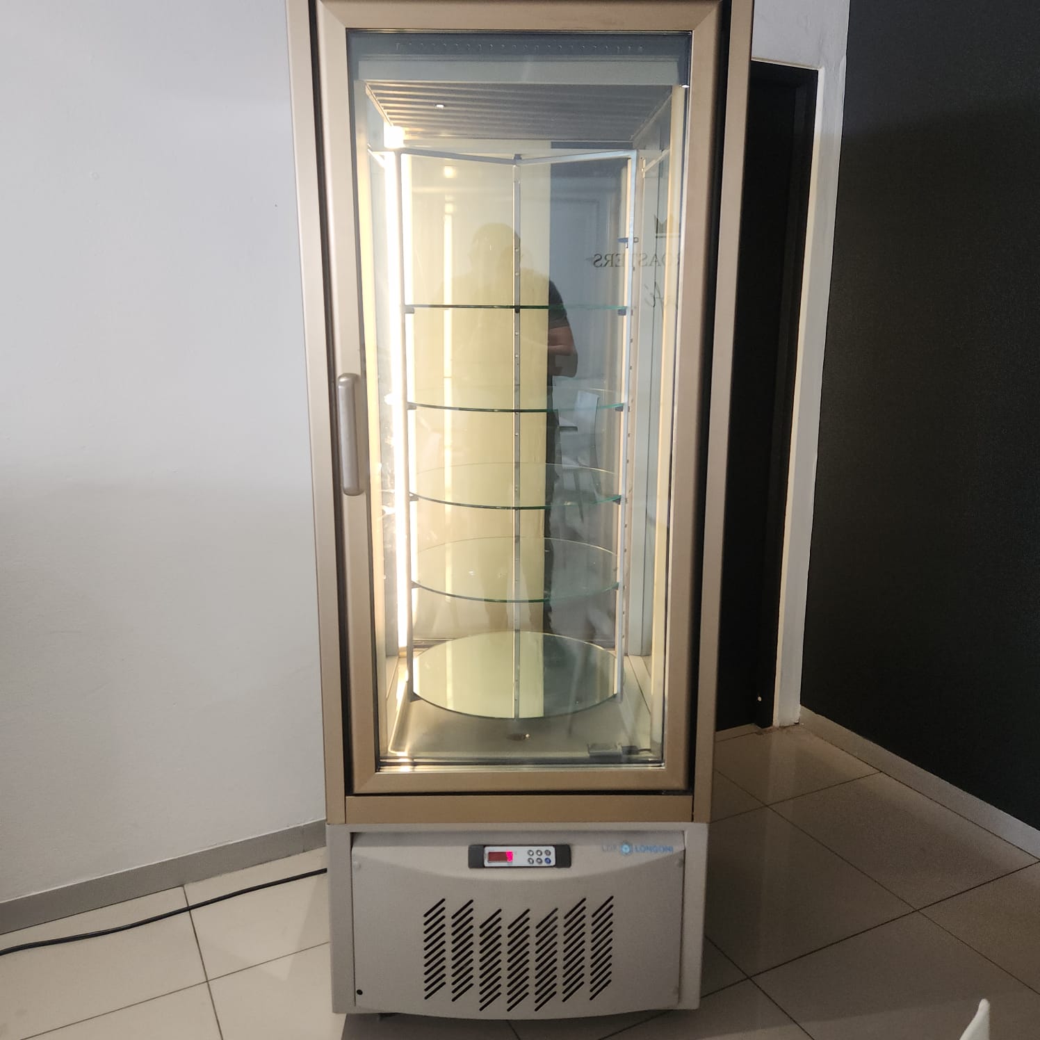 Like new. Cake fridge with inside shelving. For collection.
