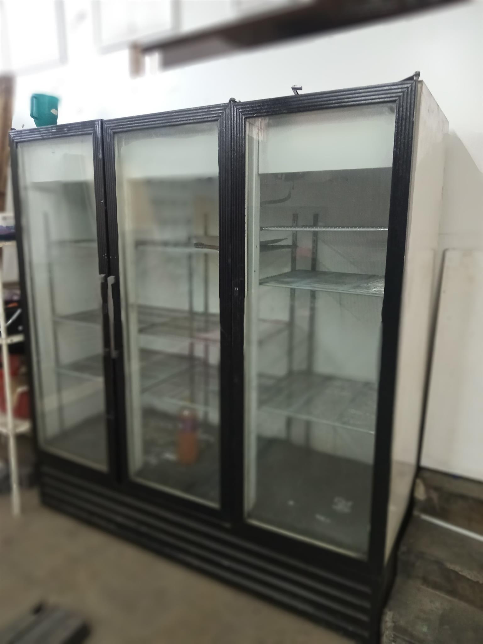 Three door cold drinks fridge for sale. The fridge is NOT functioning as motor needs to be replaced. Want to sell it as is.