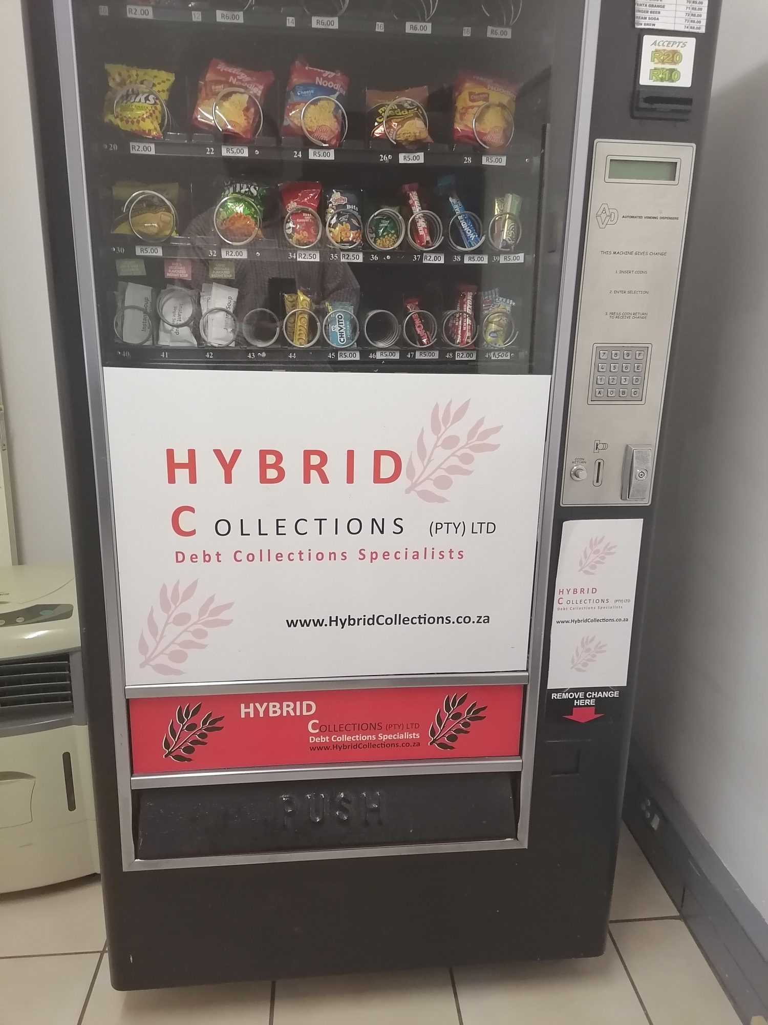 Combo Vending Machine, Coldrinks/Snacks. Been standing for 4 years. Needs attention. Machine to be sold as it.