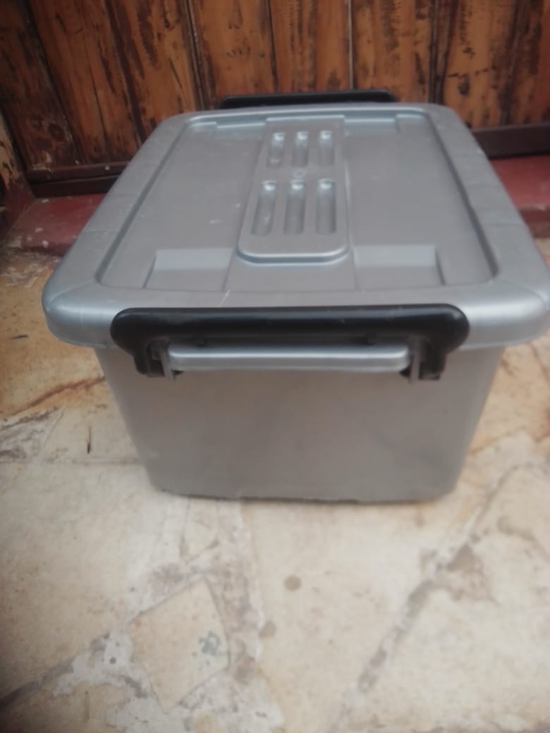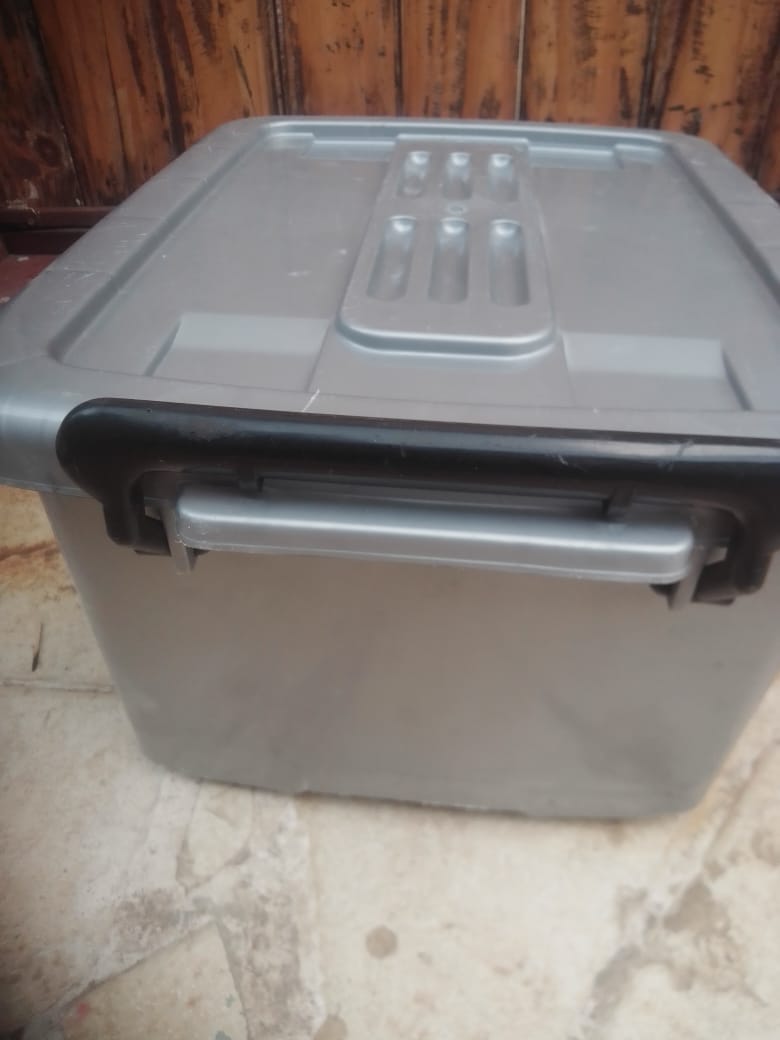 12 litre storage container with wheels and lockable handles. Still in mint condition, only used to store cables but you can store anything.