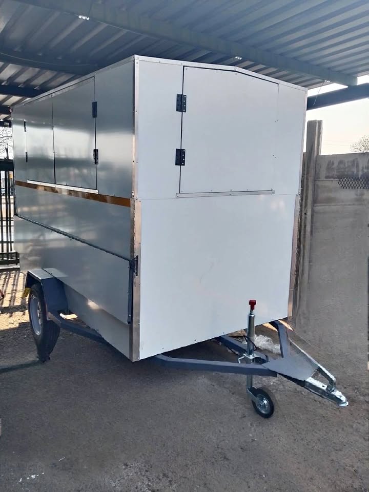 This is a custom-built food trailer, perfect for any mobile food business. It features a professional, clean design with multiple large serving hatches, making it ideal for a food truck, concession stand, or pop-up shop. It's built to be a ready-to-brand mobile storefront. 🔥0⃣7⃣3⃣7⃣8⃣2⃣0⃣1⃣7⃣7⃣🔥 943 PAFF STREET CLAREMONT PRETORIA 0082 💥YOUR DREAM TRAILER, CUSTOM-BUILT BY US. NO MATTER THE SIZE OR THE TYPE WE'LL BUILD IT. 💥