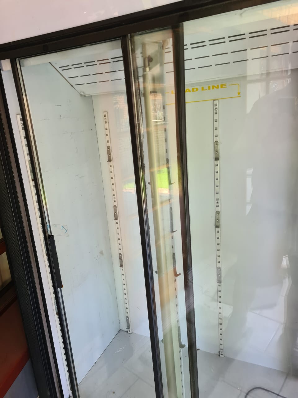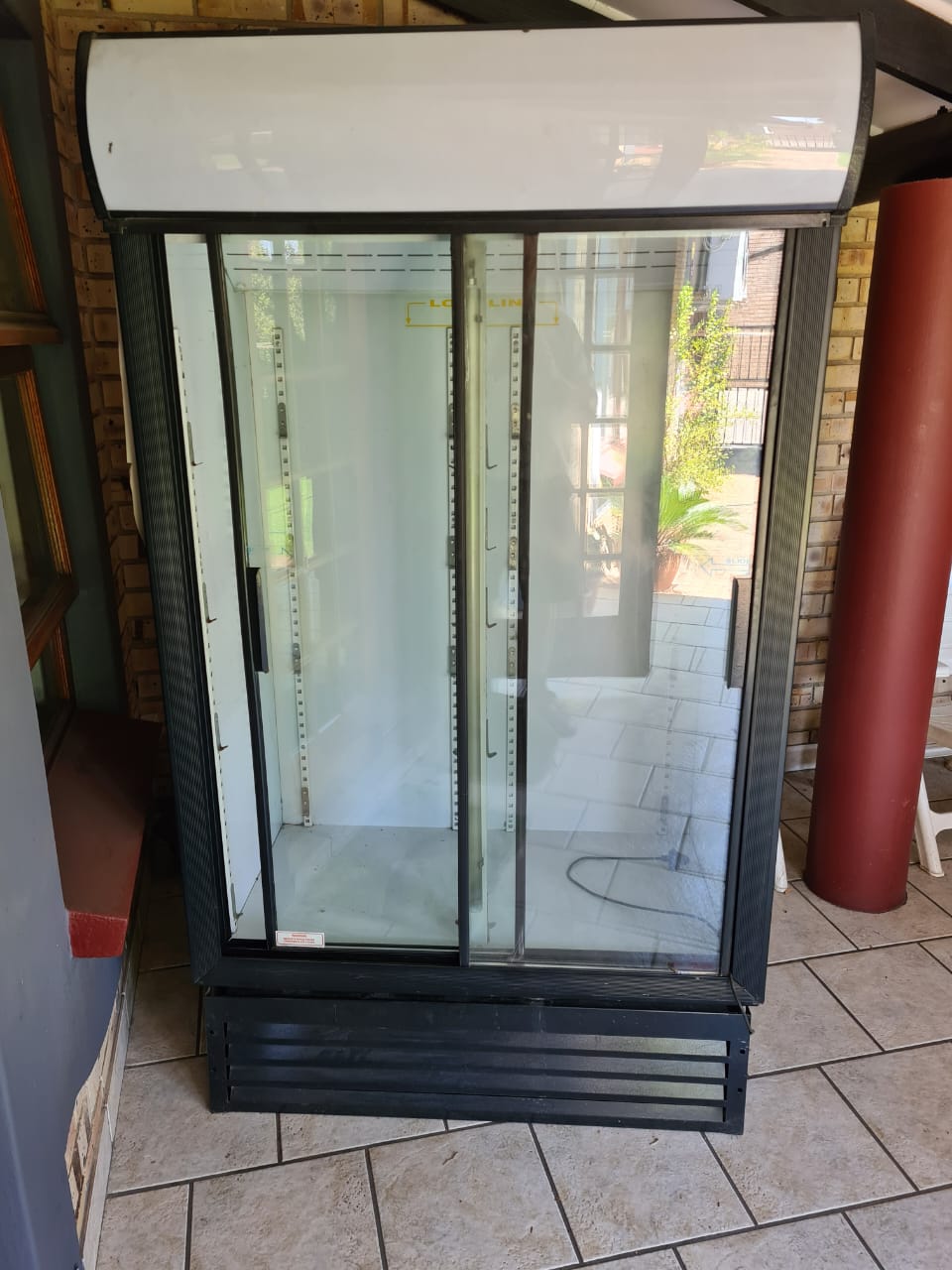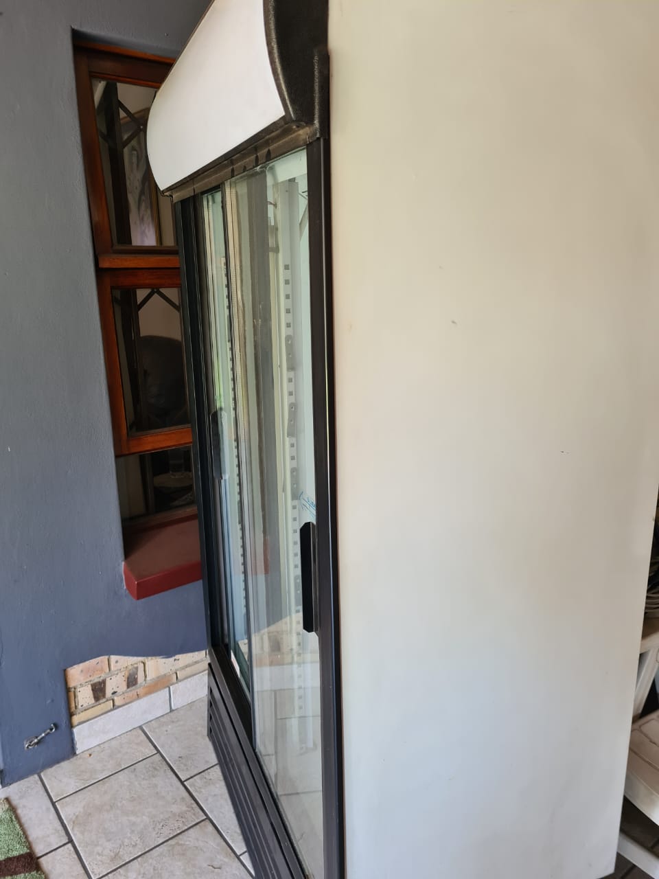 Double door display fridge. Not working - gas or coil needed. 8 coated shelves included, box complete in good condition, no rust. Doors with solid double glass. (1.9m x 1.3m) Collection in Vanderbijlpark. R 2500 or make offer.