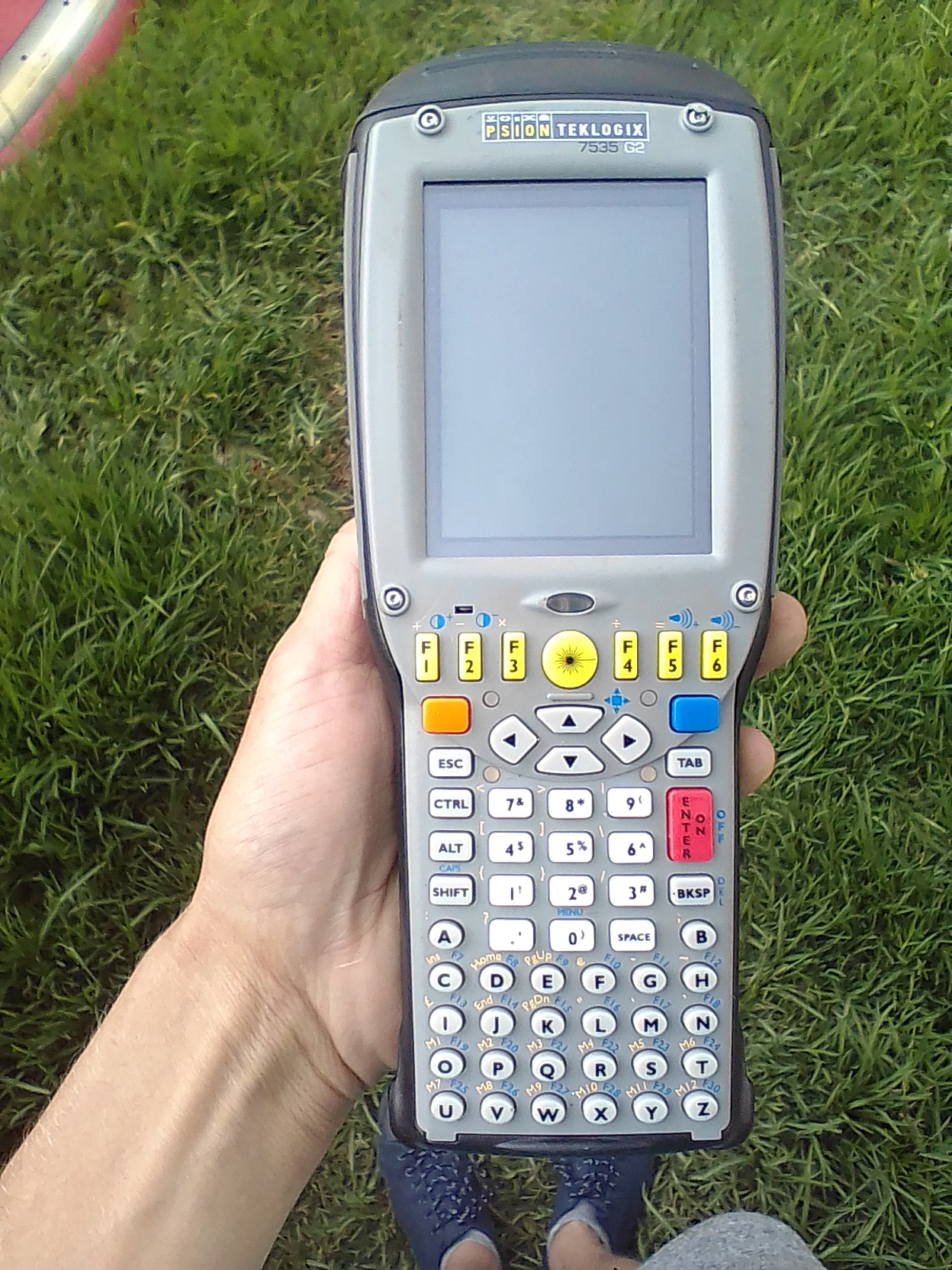 Psion-Teklogix 7535 58 Key Wireless Mobile Computer - Barcode Scanner with battery and stylus Cosmetic and Functional Condition: Used, in good working condition, with light to moderate wear. Includes stylus and battery. Tested and fully functional. Reloaded with current version of WinCE 4.2