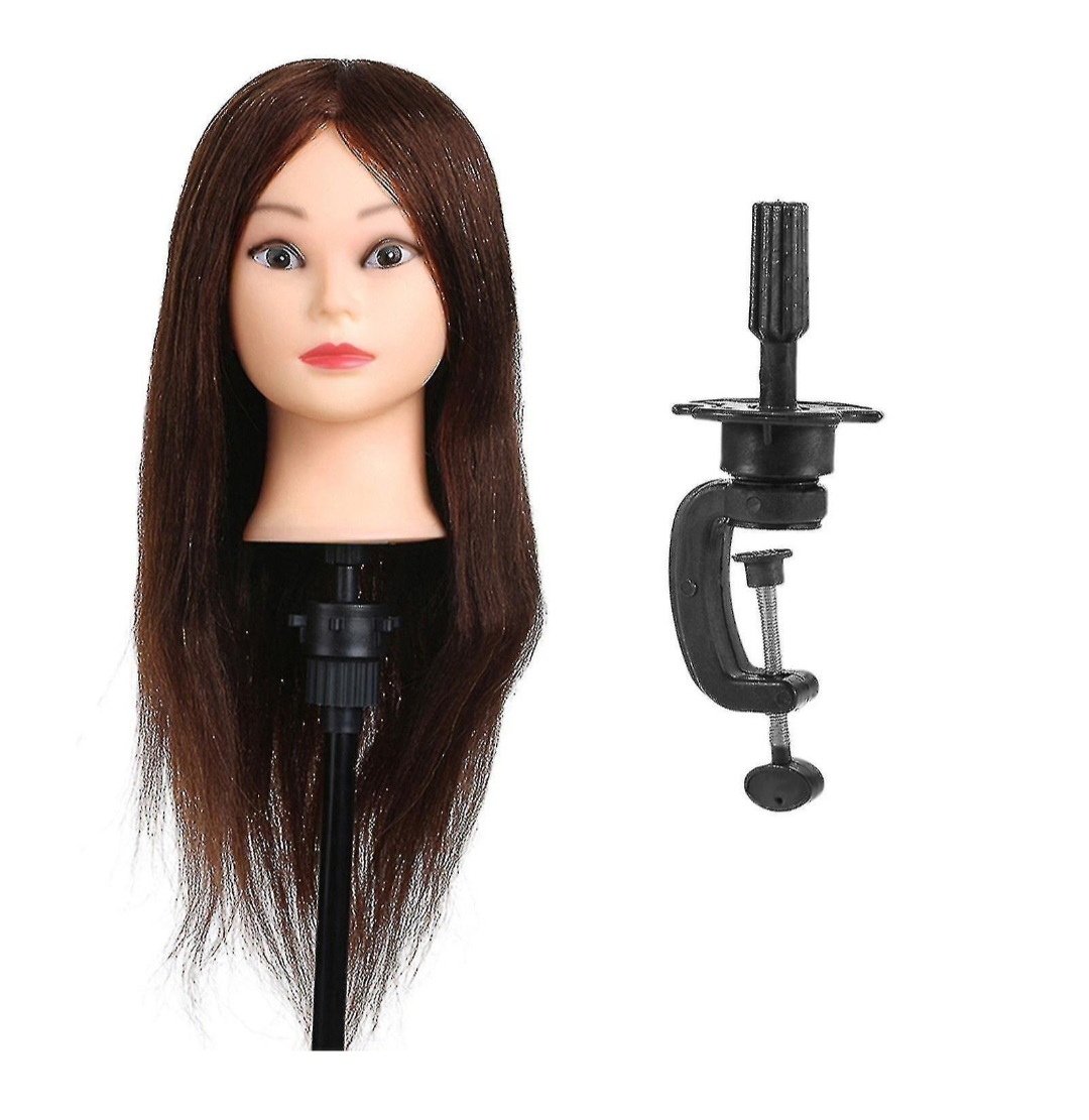 Brand new mannequin salon head with adjustable clamp includes fake long brown hair. Training purposes or display.