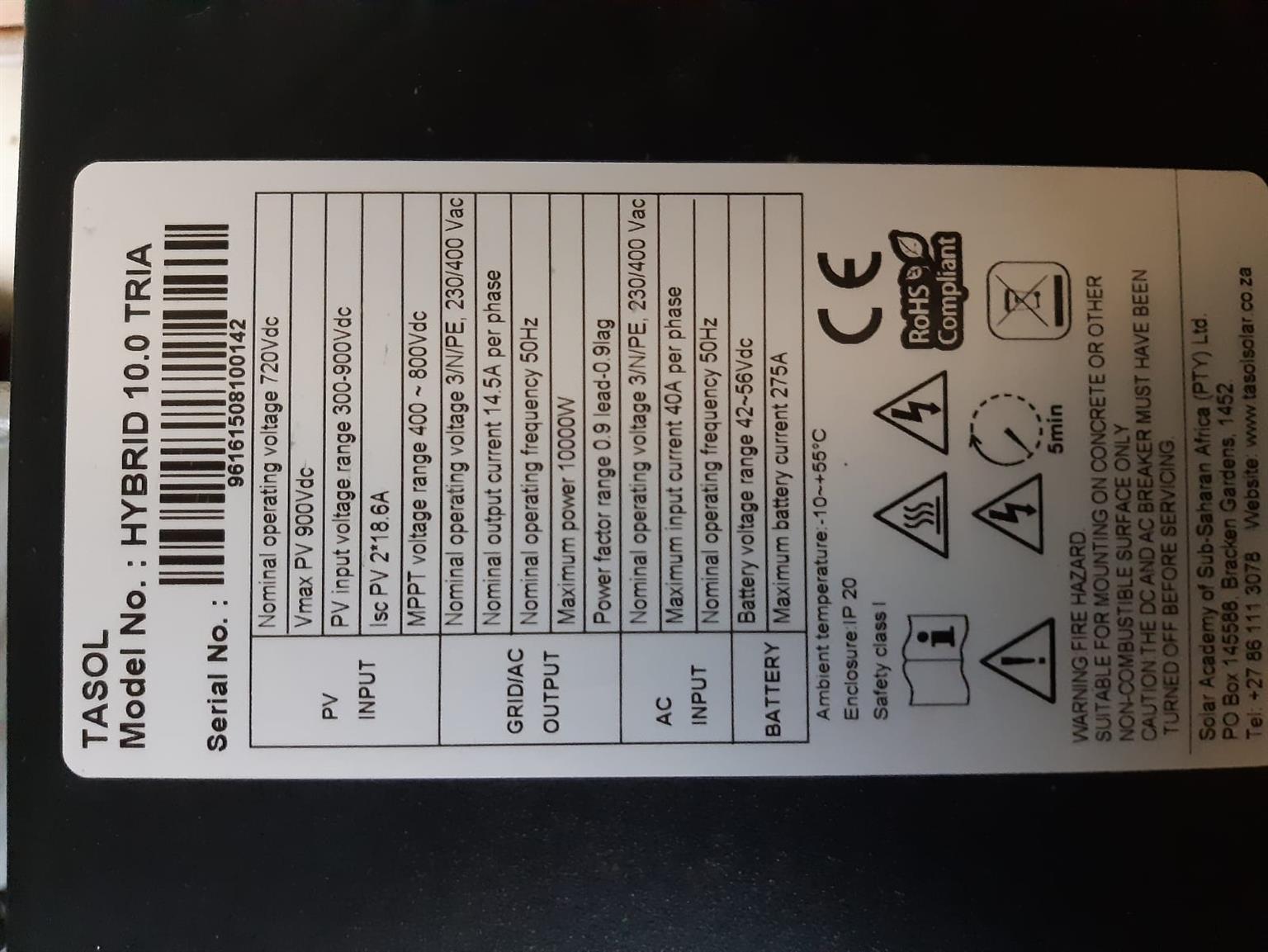 10KVA Tasol hybrid 3phase inverter