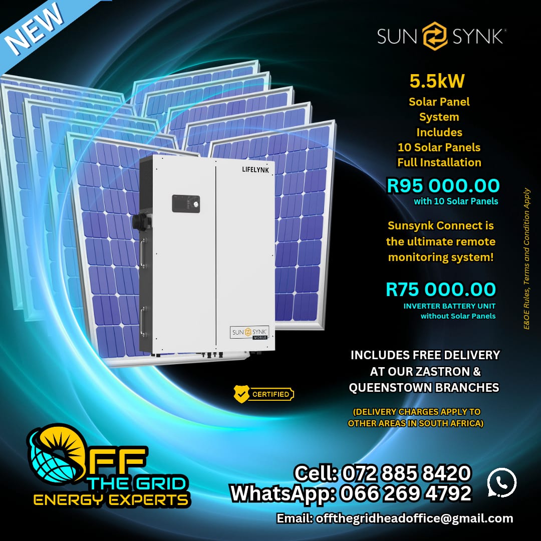 New High Quality Solar Panel Systems with Inverters, delivered and fully installed.City and Suburb - Zastron