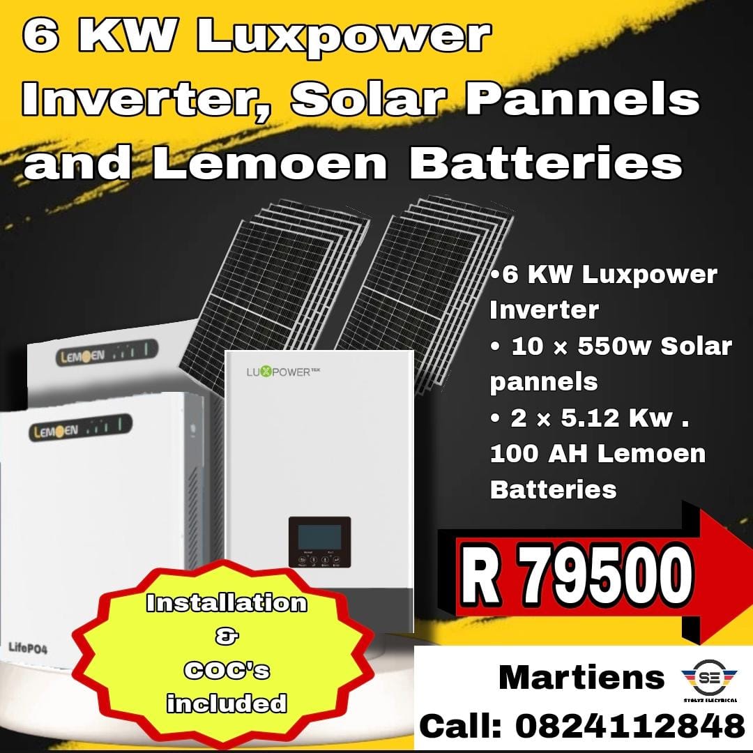 6kw Luxpower + battery+ 6 pannels = R 57000