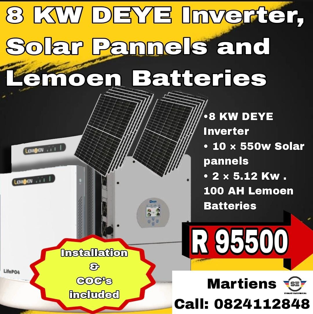 8kw Deye + 2X battery+ 10 pannels = R 95500