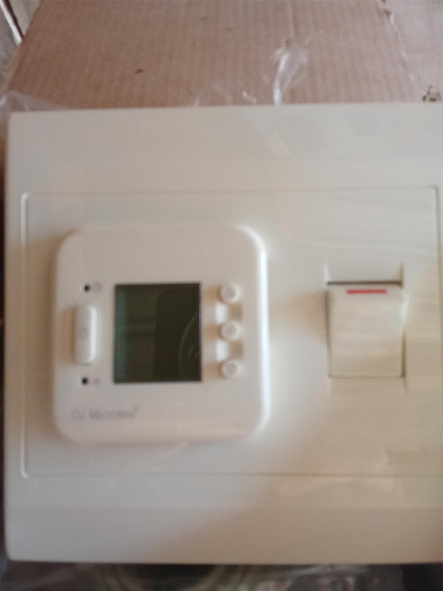 1 Digital thermostat which is programable on a 4x4 backing plate.Also 1 plug in thermostat