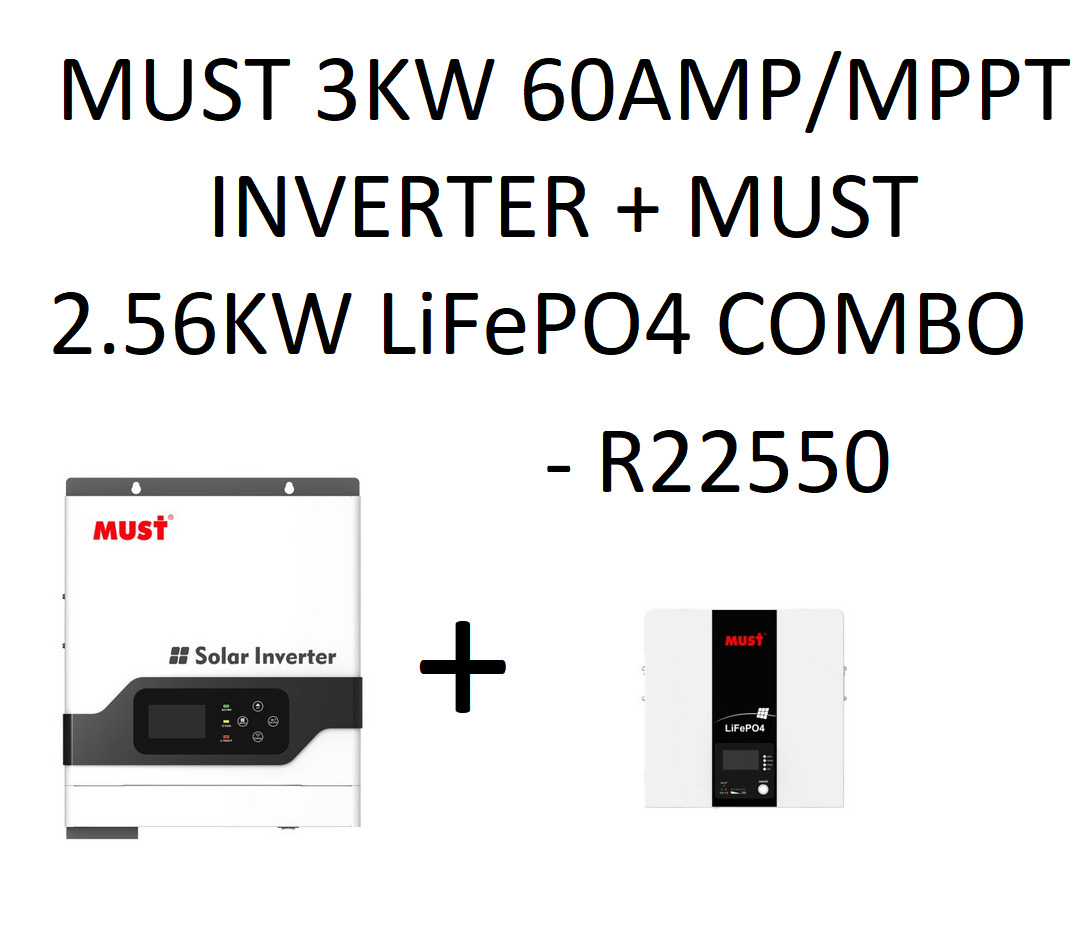 Must 3kw 60AMP/MPPT Iinverter + Must 2.56 LifeP04 Combo