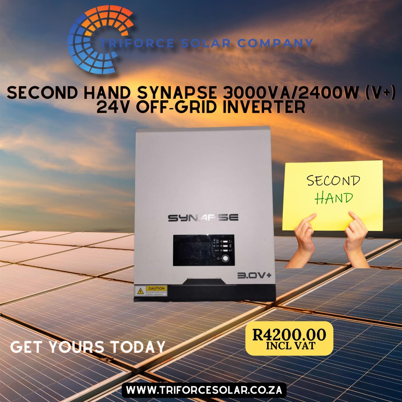 SECOND HAND SYNAPSE 3000V A/2400W (V+) 24V OFF-GRID INVERTER