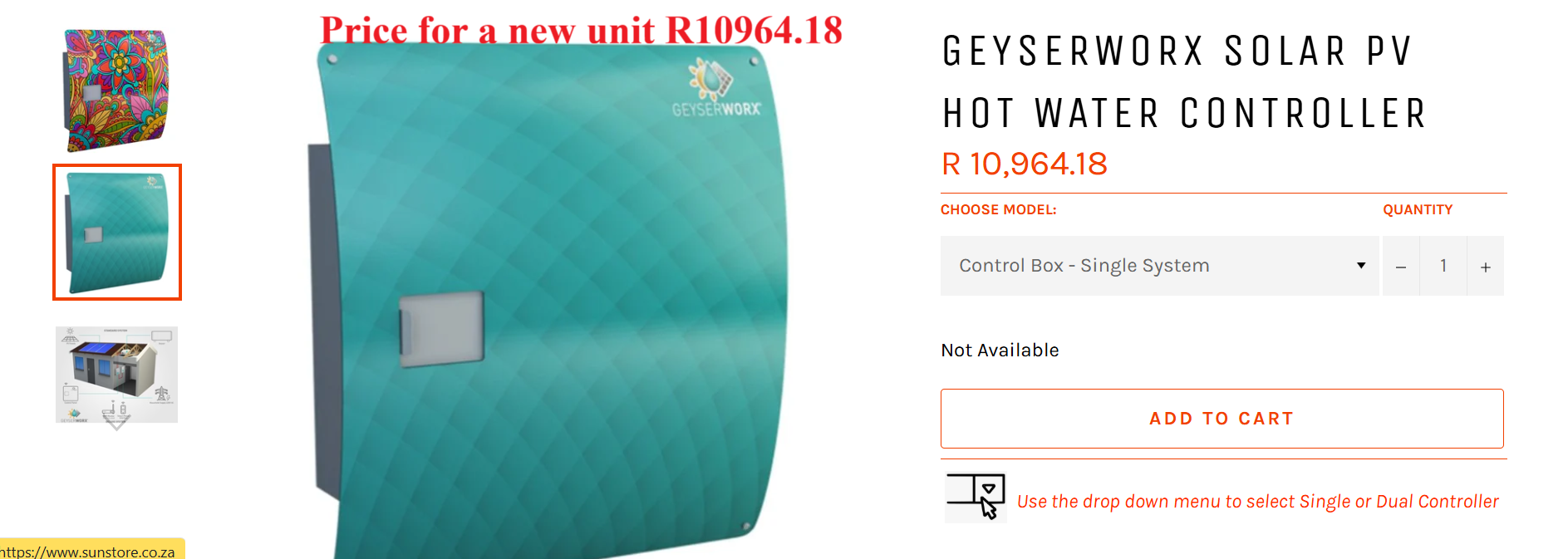The GeyserWorx Controller is used in GeyserWorx' hot water systems. The system utilizes a dedicated solar PV array to heat water in your existing geyser during the day. It uses micro-processors to feed the heating element with DC voltage directly. During the day, the solar PV will heat your water to 70 ⁰C. AC power will be used during times when the Solar Power is not sufficient to keep your water at all times above ⁰55 C. This will: