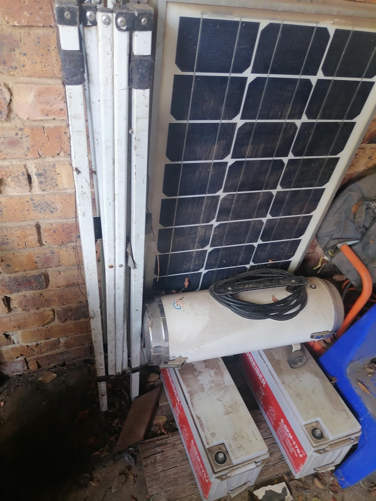 Used tried and tested brand solar two 12 volts batteries(two small used solar panels are also optionally available /for sale).