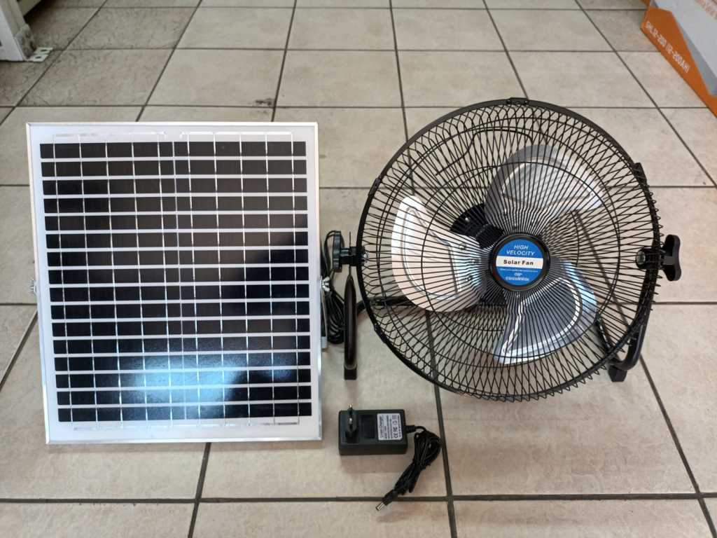 Comes with 18V 20W solar panel and a AC power adaptor.3 speed settings
