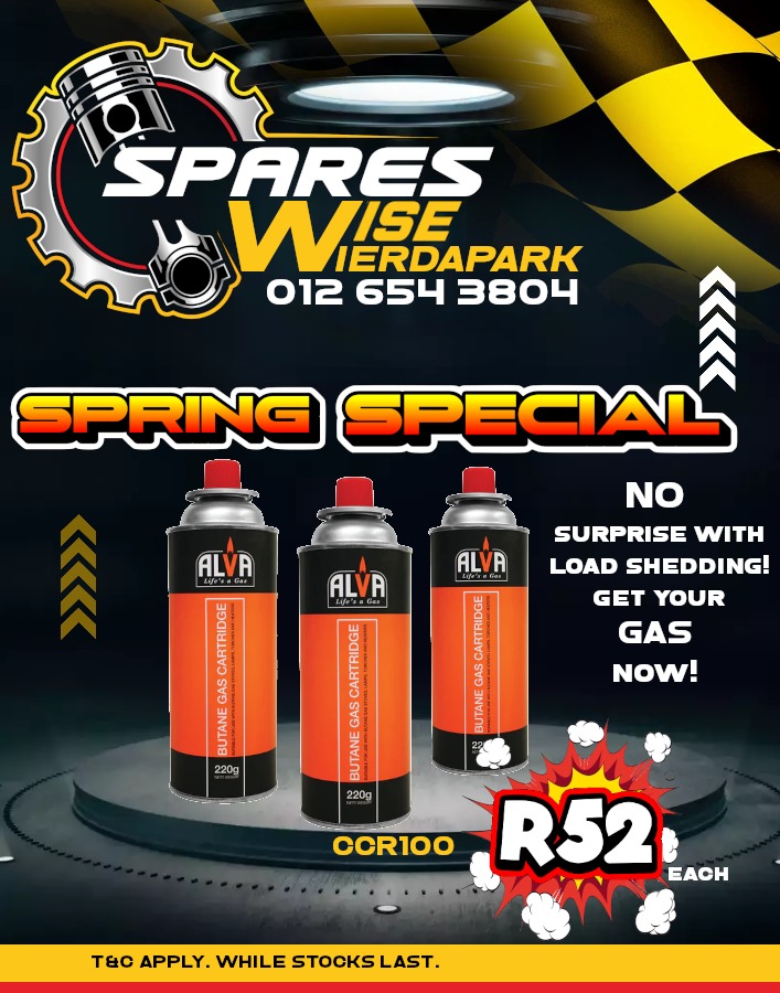 #spareswisewierdapark #loadshedding #loadsheddingsolutions #springspecial #alva #gascanisters #cooking