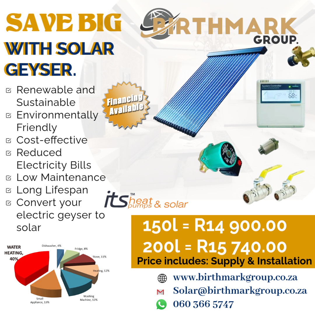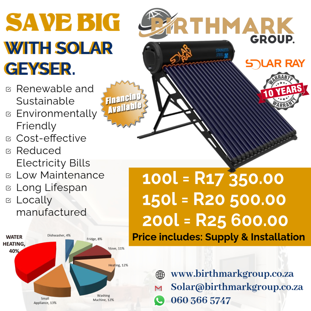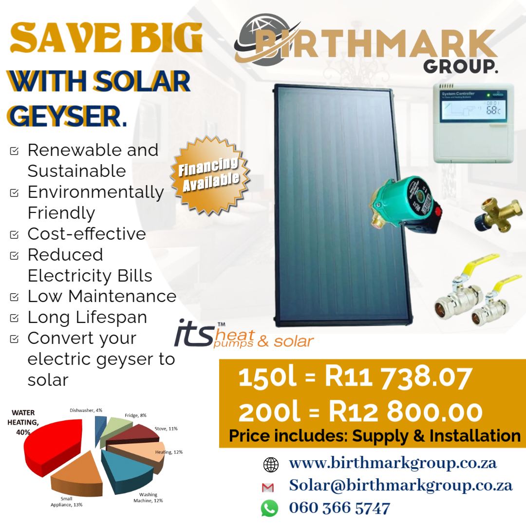 We supply and install high quality solar geysers at an affordable price. Gauteng, North west, Limpopo and Mpumalanga provinces.