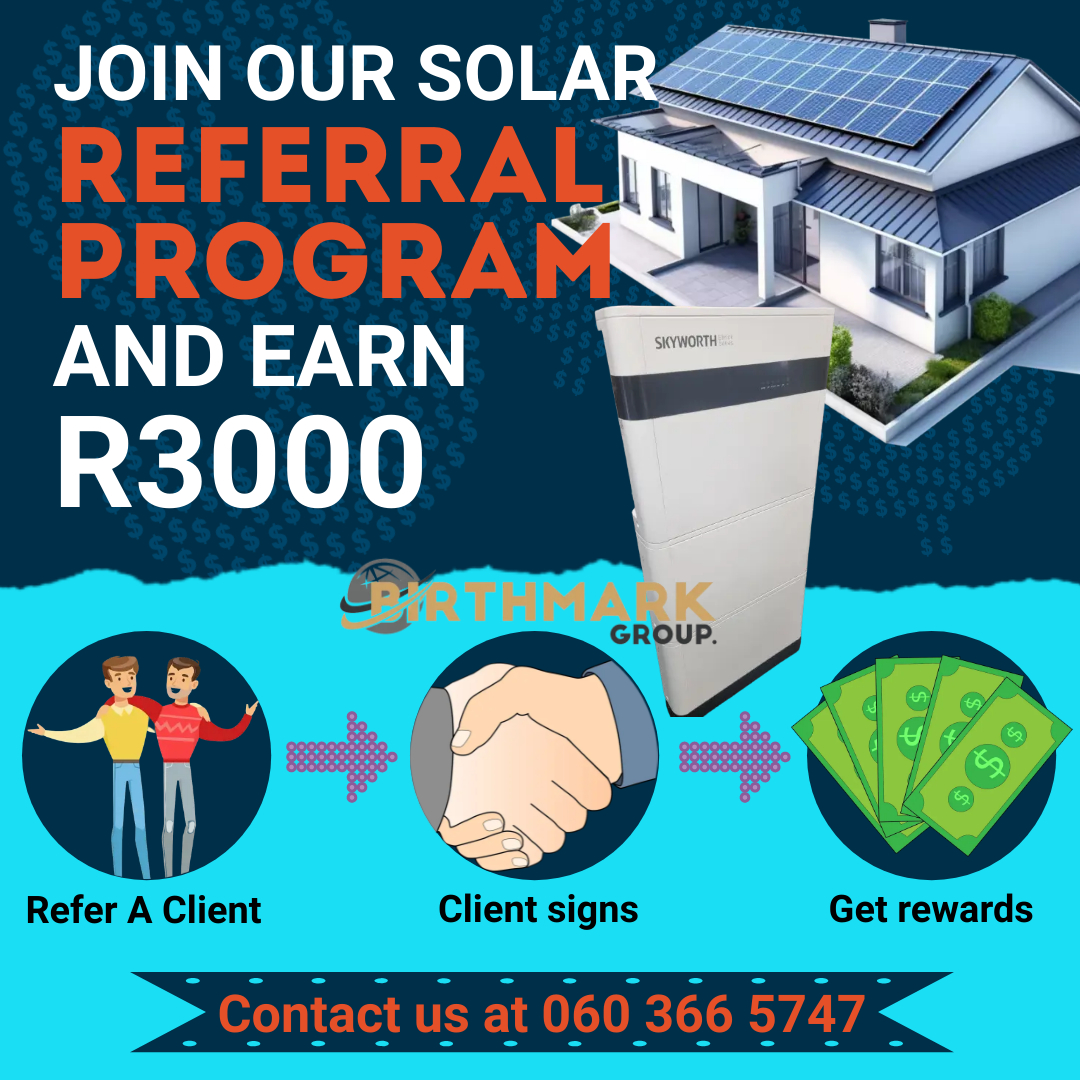 Refer a Full Solar System: Earn R 3000 when they install with us.