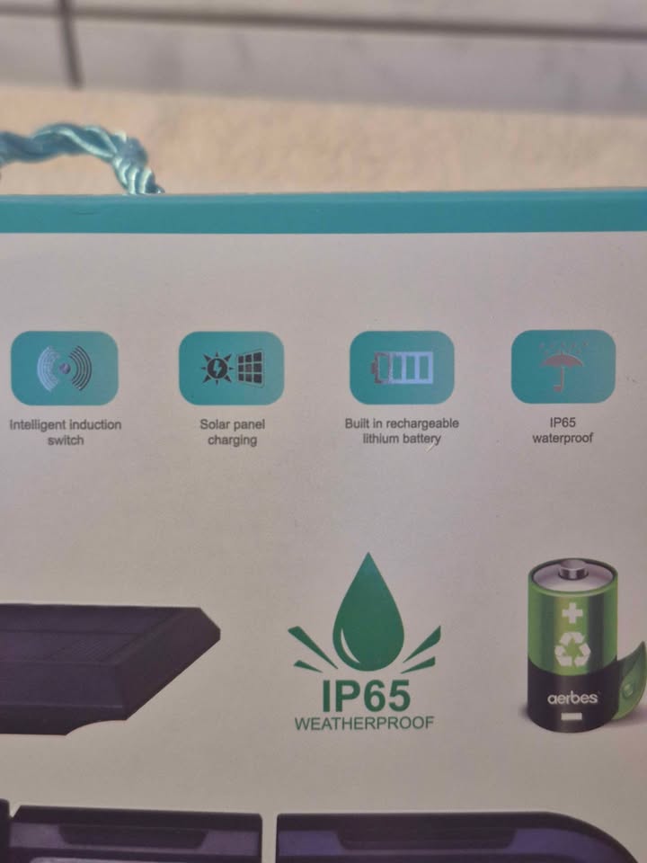 It is a solar-powered light, meaning it charges during the day and operates without consuming electricity. The light is built with a rechargeable battery and features intelligent induction (motion sensing). It has an IP65 weatherproof rating, making it suitable for various outdoor conditions. It is designed for easy, wireless installation on outdoor walls, suitable for gardens, patios, or pathways.