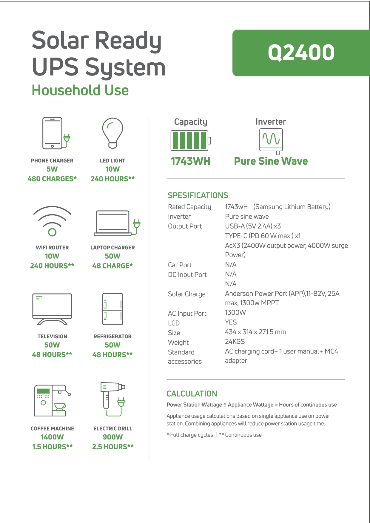 Power up with the Kapa Energie Q2400 for just R18,500! 2400W pure sinewave, 1734Wh battery—runs phones (480 charges), lights, WiFi (240 hours) through Eskom’s 12.74% hike or cable theft outages. Solar-ready, portable, no install needed. Beat retail prices—limited stock, collect now! DM for details. For EFT, item handed over only after payment clears (up to 48 hours).