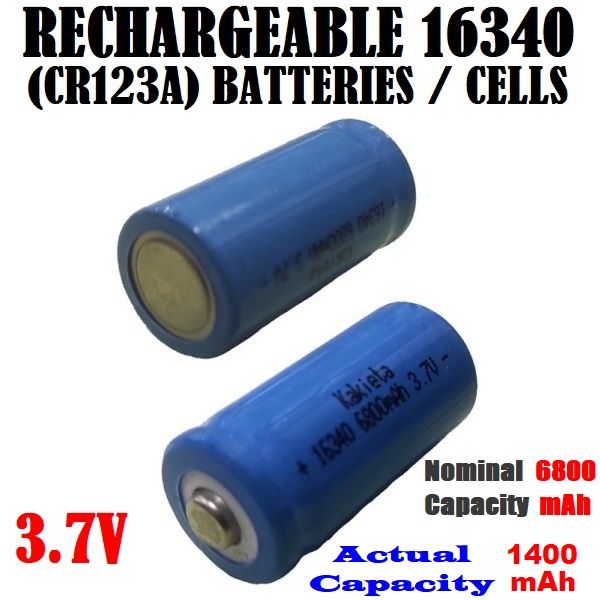 A Pair (2Pces) Of 16340 CR123A 3.7V Lithium-ion Rechargeable Batteries.