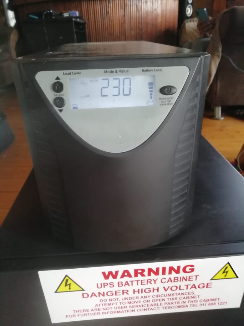 Sspro 2200l 2000va ups. Takes 2 x 100ah batteries. Enough power to run a few pcs. Comes without batteries