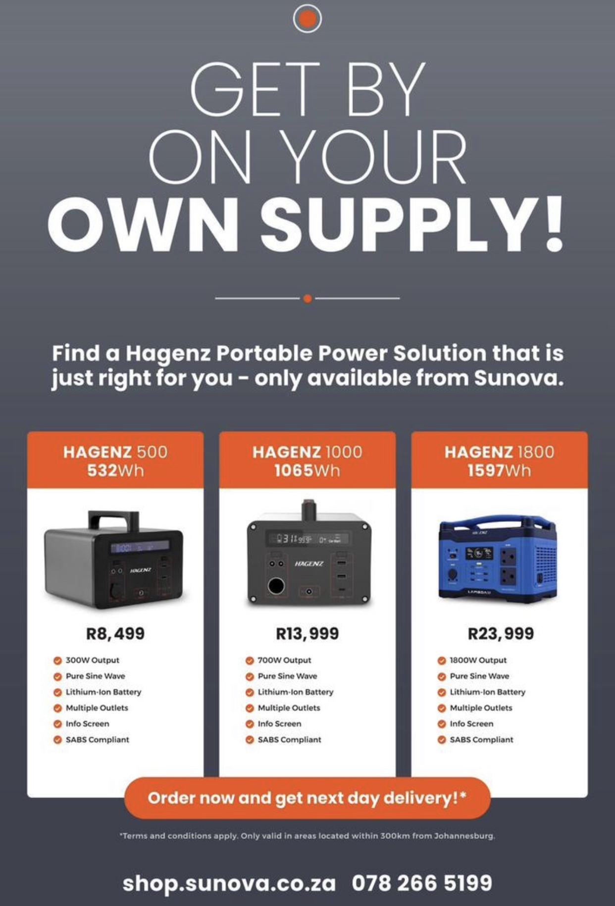With the new Hagenz range of Portable Power Systems you can power a large variety of appliances with ease thus preventing the effects of constant load shedding.