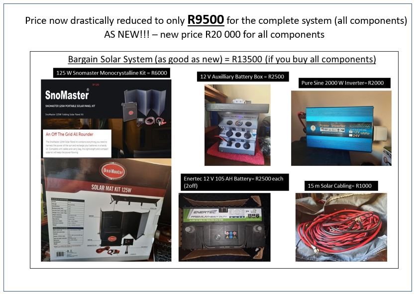 Snomaster panels, inverter, batteries x2, battery box, controller