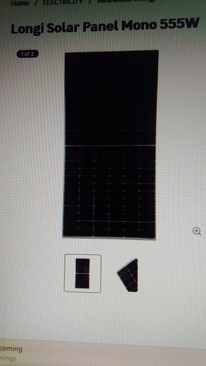Longi Solar panel Moni 555w. More details:Intention - For SalePrice - 2350.0Region - GautengCity and Suburb - Constantia kloofRoodepoort