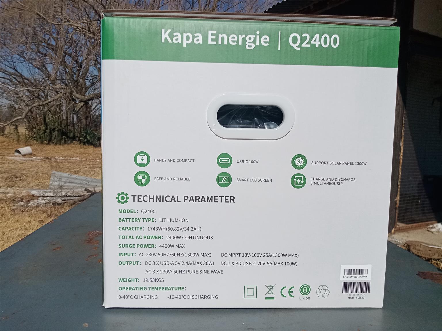 Kapa Q2400 portable energy storage/inverter with lithium-ion battery,can charge by ac or soler