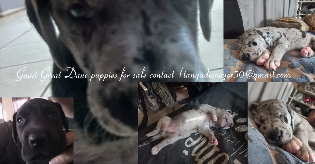 Registered Breeder: Our *Giant Great Dane* Luna is on the verge of having puppies. A litter from *Luna and Loutjie*. Will be available 10 weeks. Book ur puppy now in advance to avoid disappointment. Regular updates and pics. Inoculation and de-worming. Canine registry provenance. Pretoria Far-East, Witpoort Welbekend. close to Grootfontein CE. Rietvlei View. Mooikloof, The Hills, Nestpark, Bapsfontein, Bronkhorstspruit. Contact Tanya to book ur puppy +27621008972view more