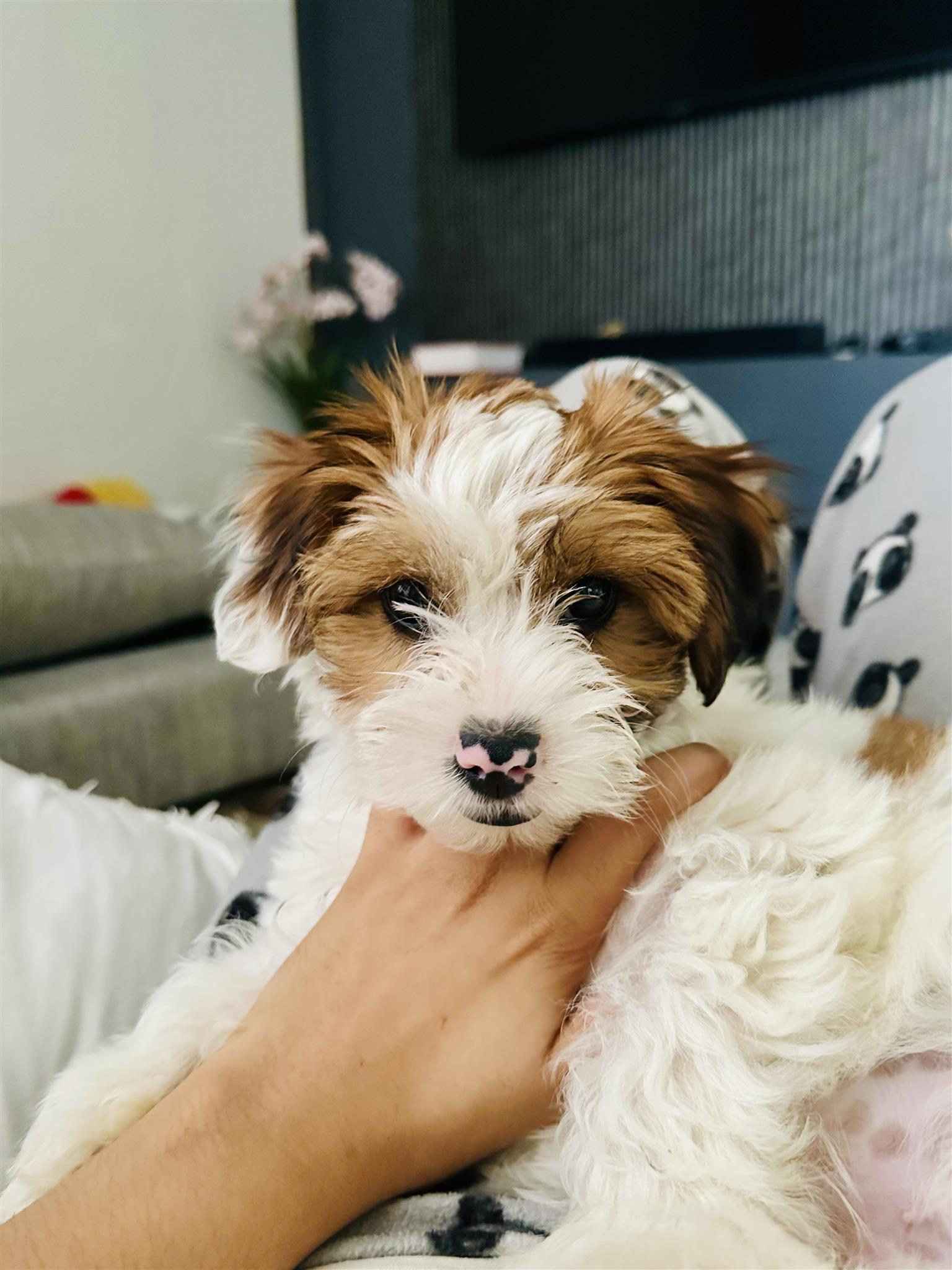 12 week old Beautiful Male Pure Bred Yorkie puppy fully vaccinated vet checked and dewormed. Light brown and white in colour. Fluffy little guy that loves to play and loves attention. Does well on his own or with other dogs.