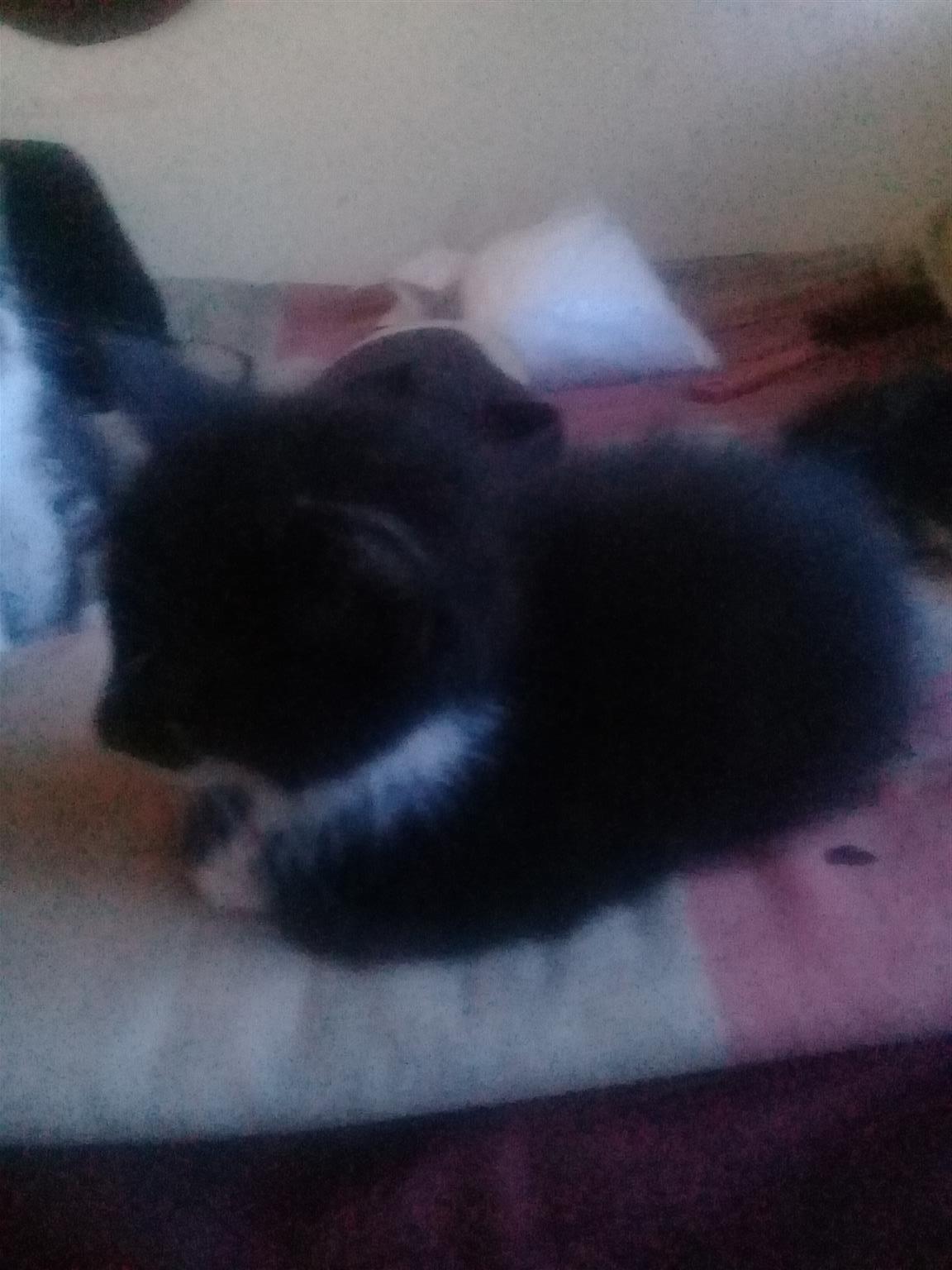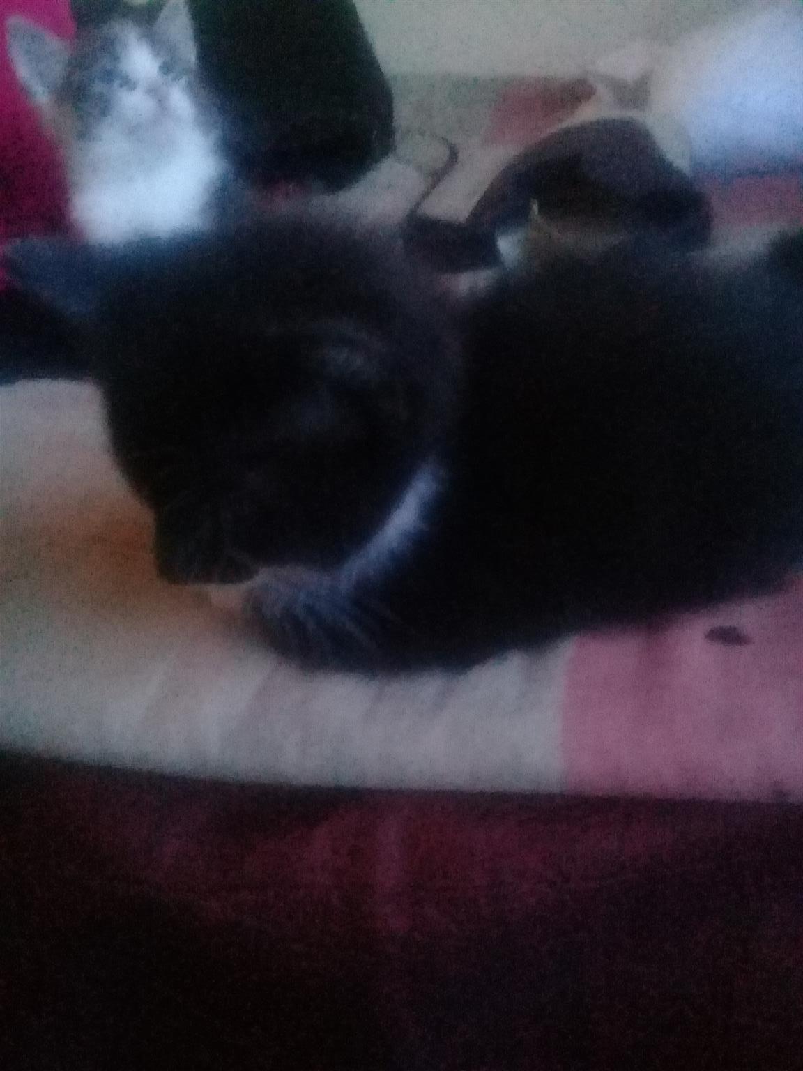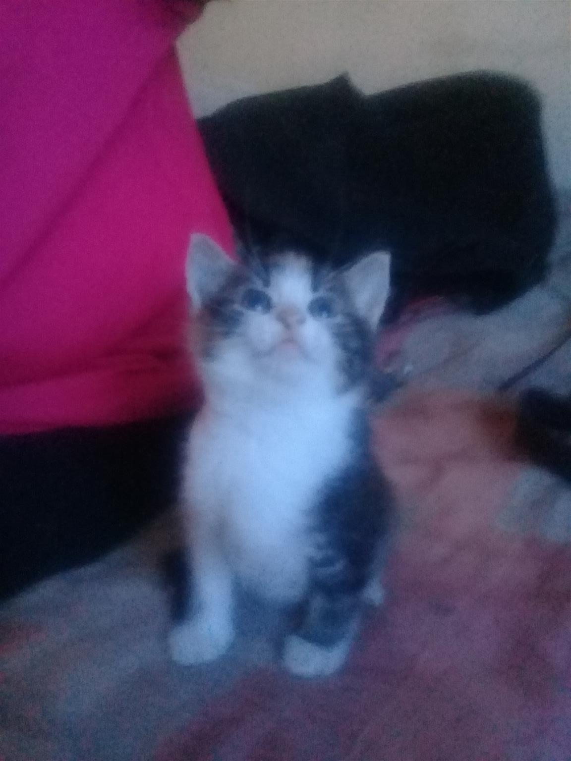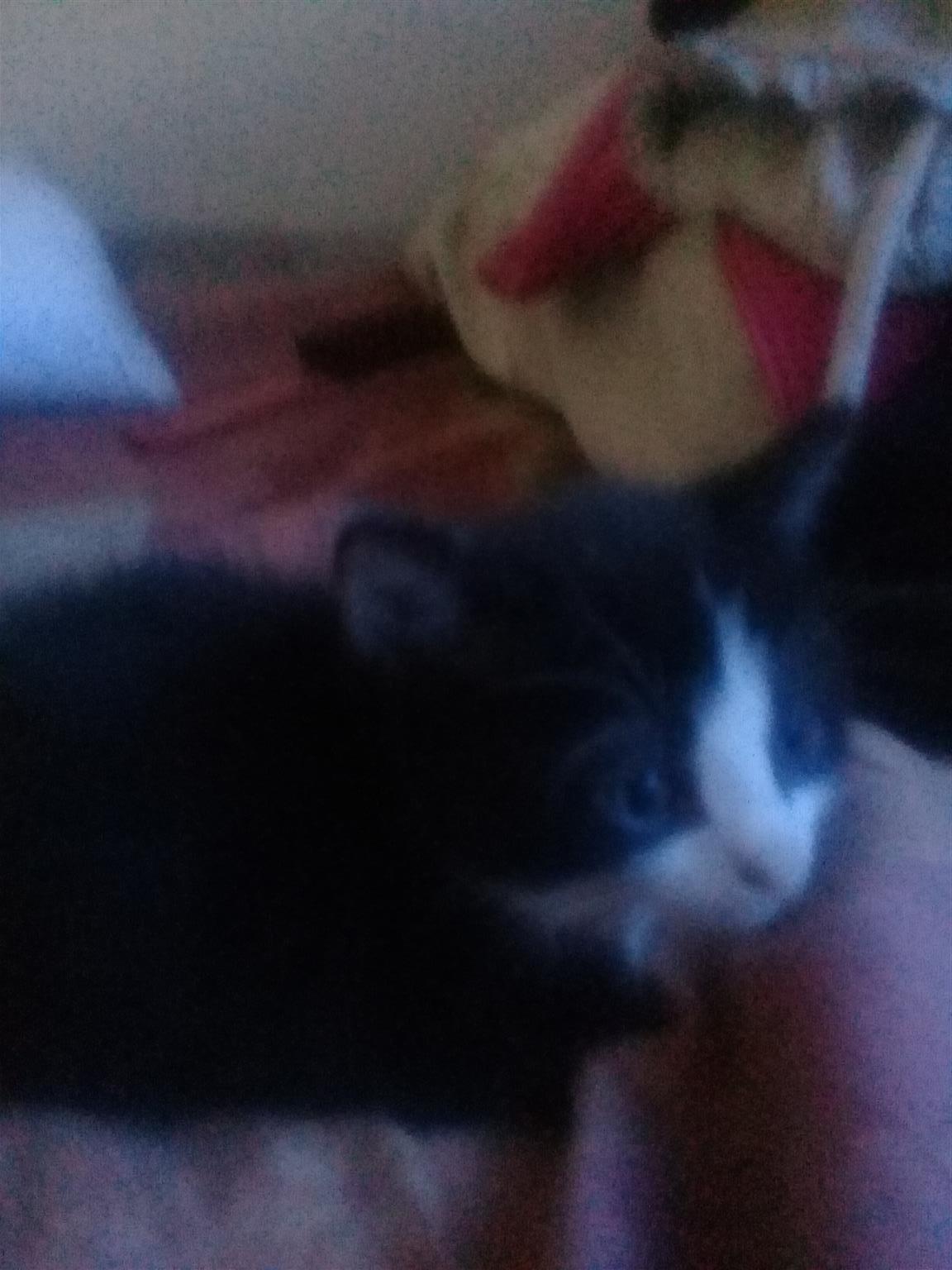 4 cute little kittens. 8 weeks old. 1 whiskies look a liķe. Two black and white. 1 bond kitten. There are 3 females and 1 male. They are looking for loving families.