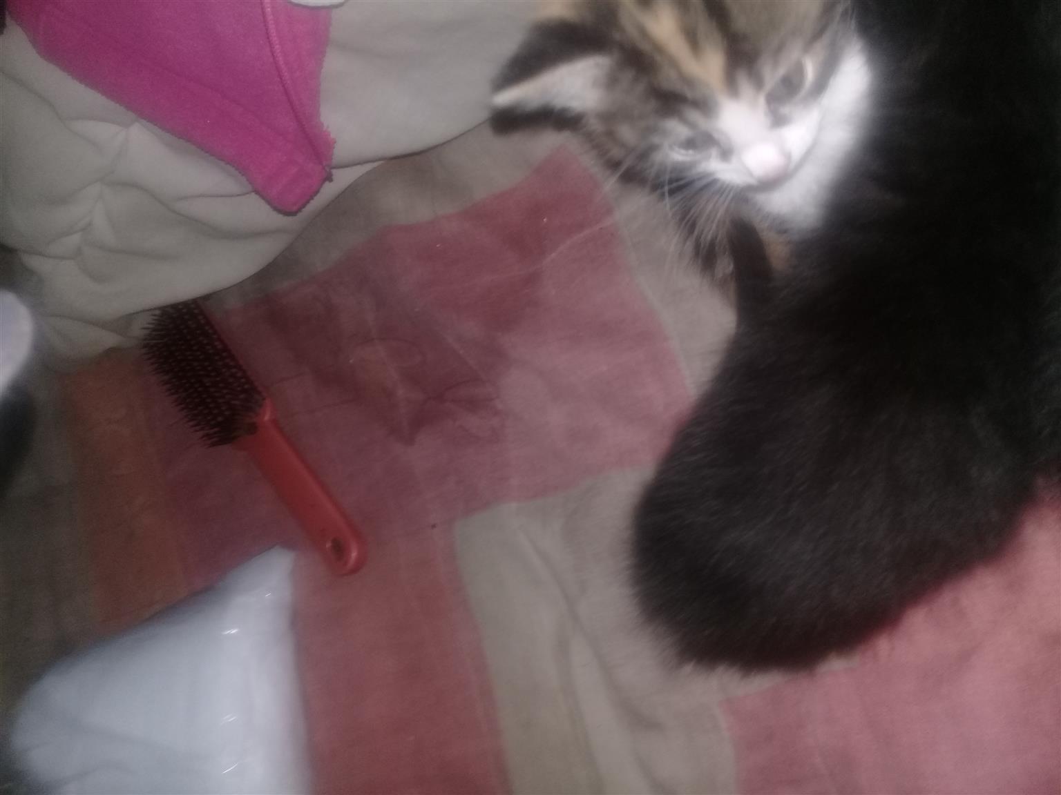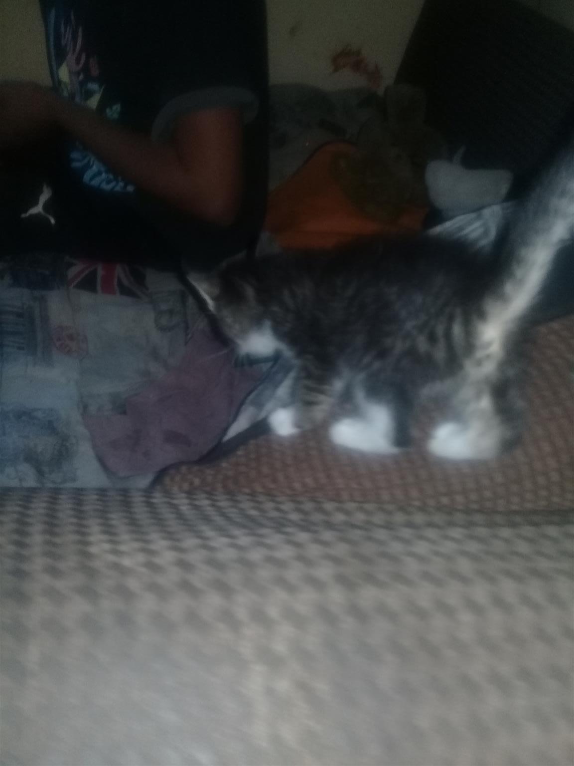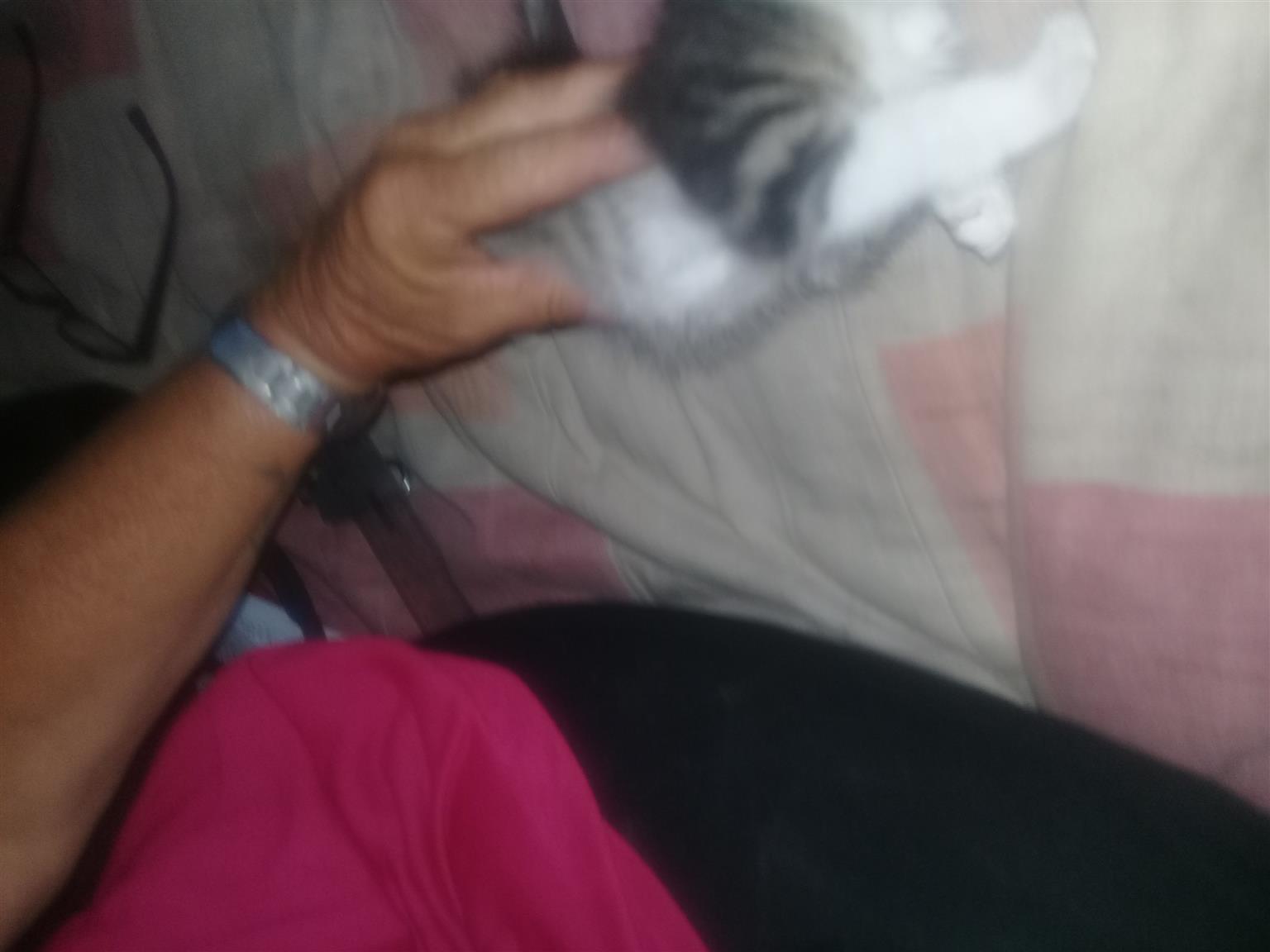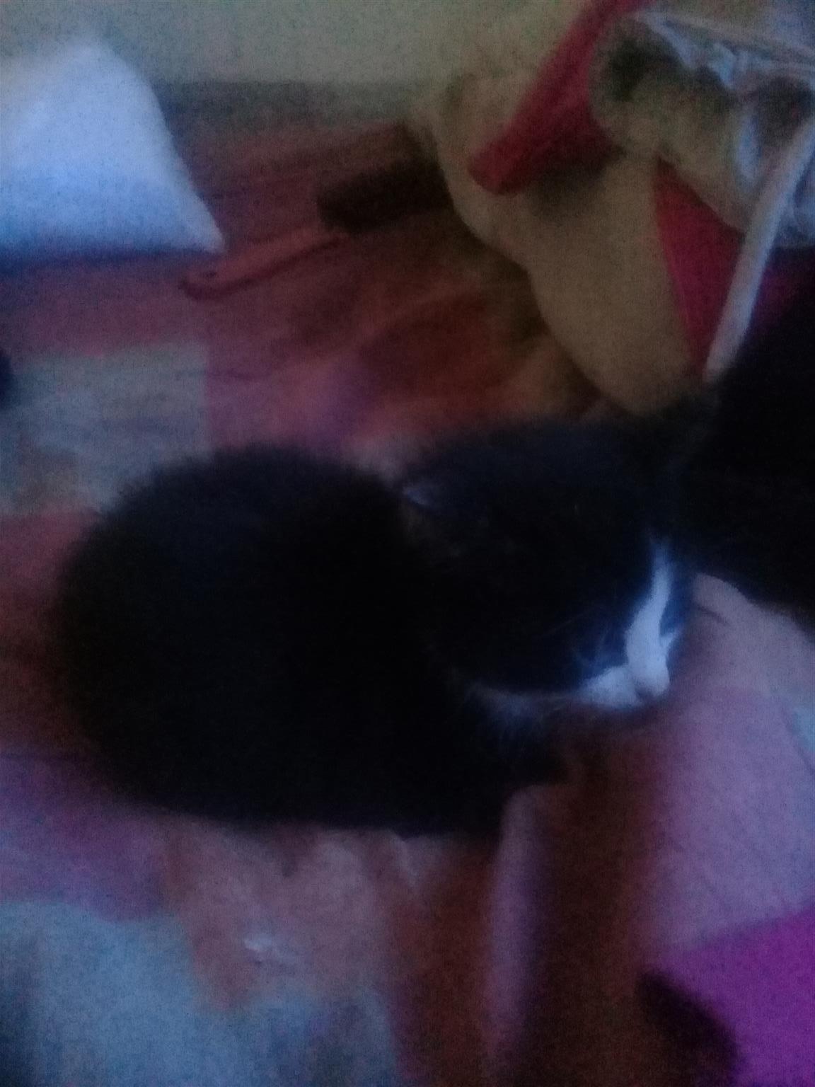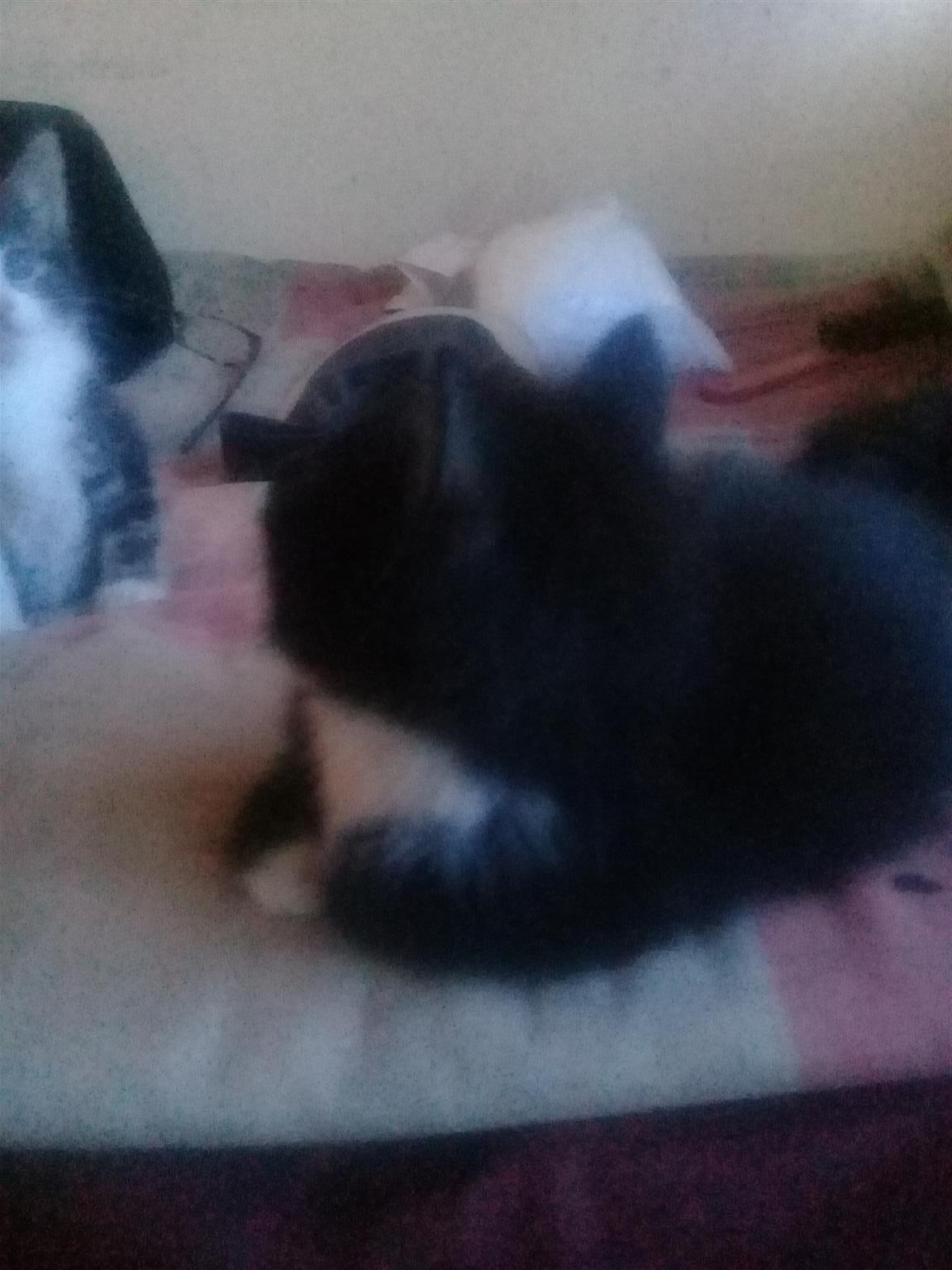 4 cute little kittens. 8 weeks old. 1 whiskies look a liķe. Two black and white. 1 bond kitten. There are 3 females and 1 male. They are looking for loving families.