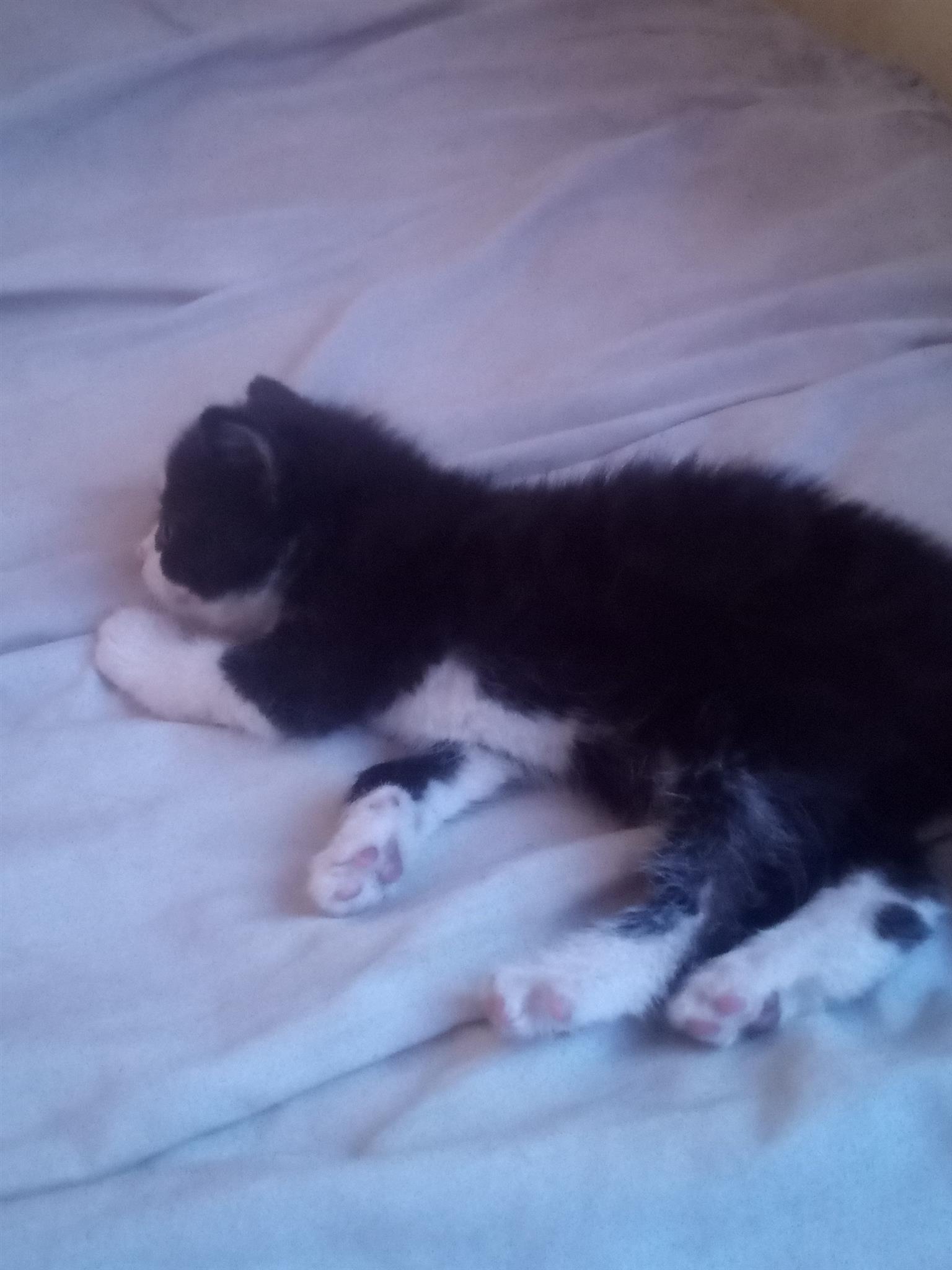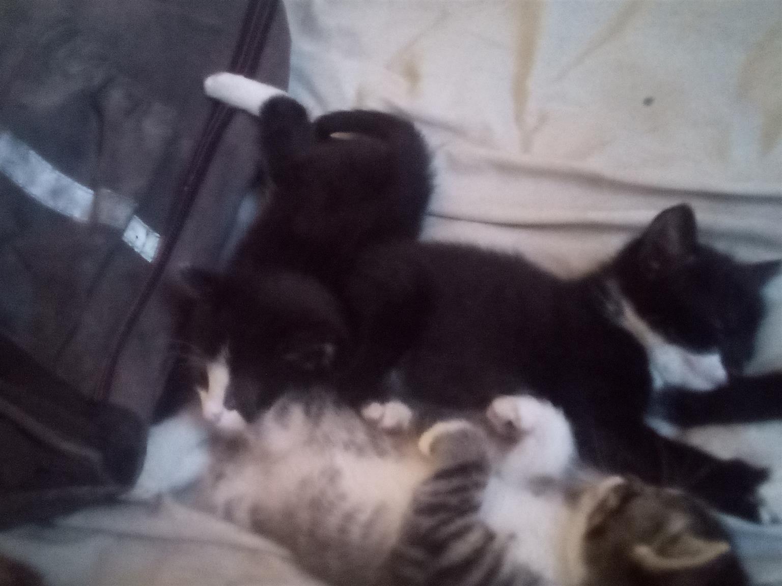 Kittens, 8 weeks old. Two black and white females and one bond female plus a whiskes look alike. All female kittens that is so cute and playfully. All of them is looking for loving caring families. Need is urgent, because my landlord is complaining. Please whatsapp or call me on my profile number.