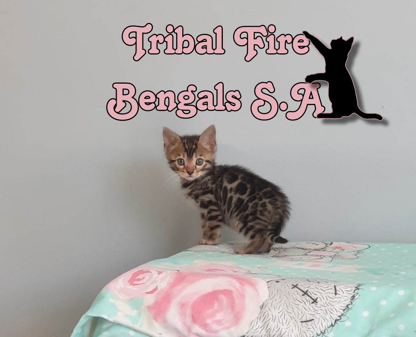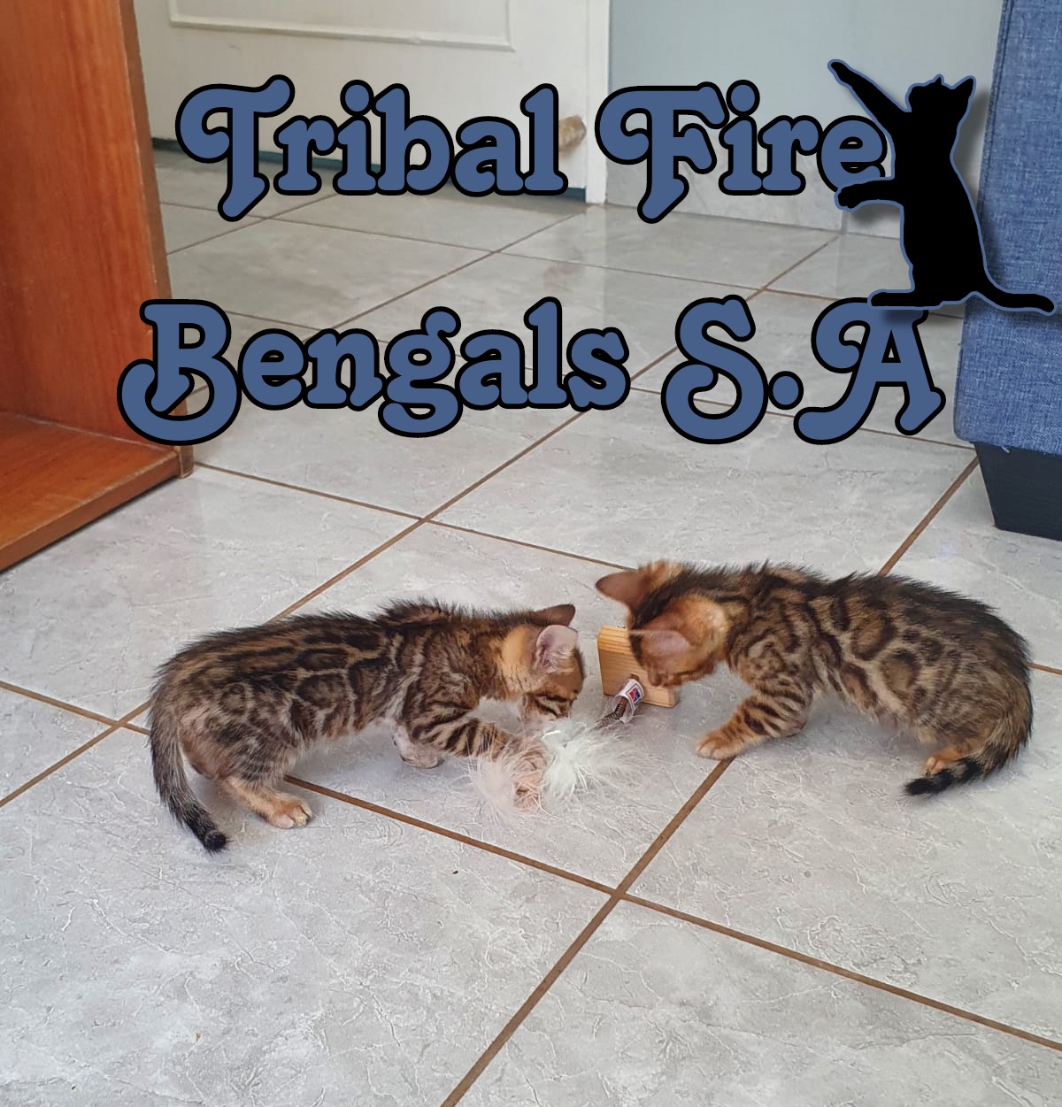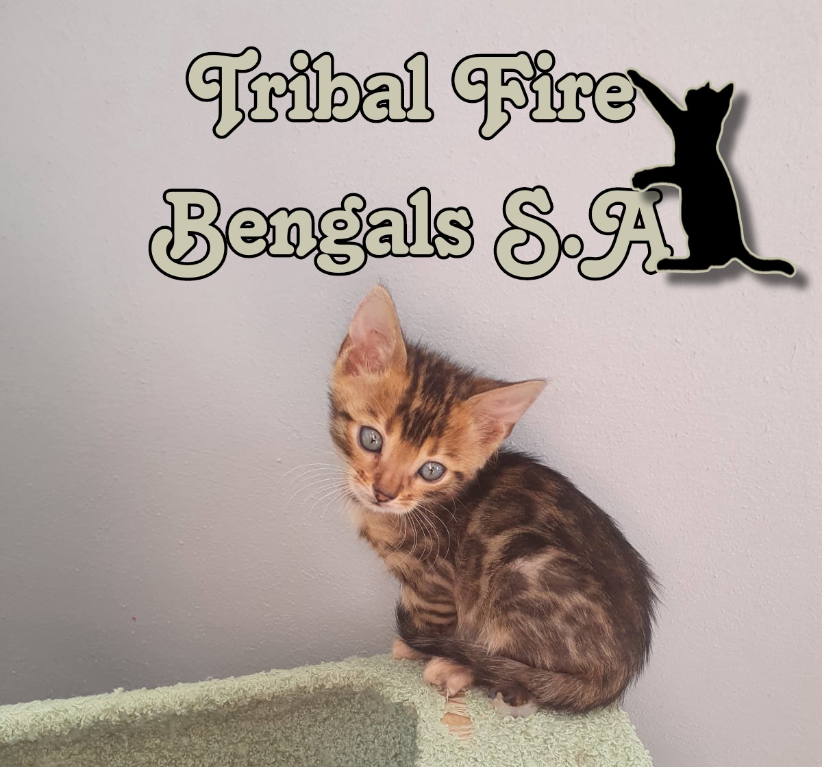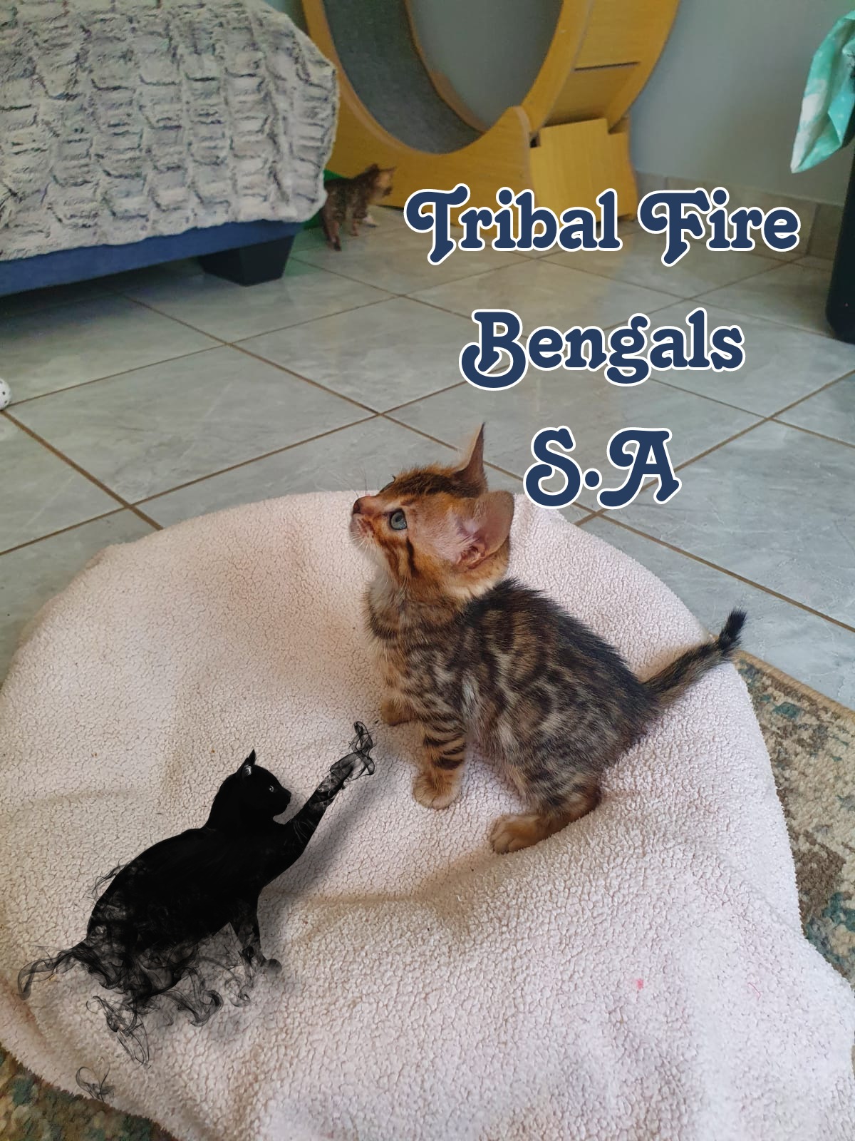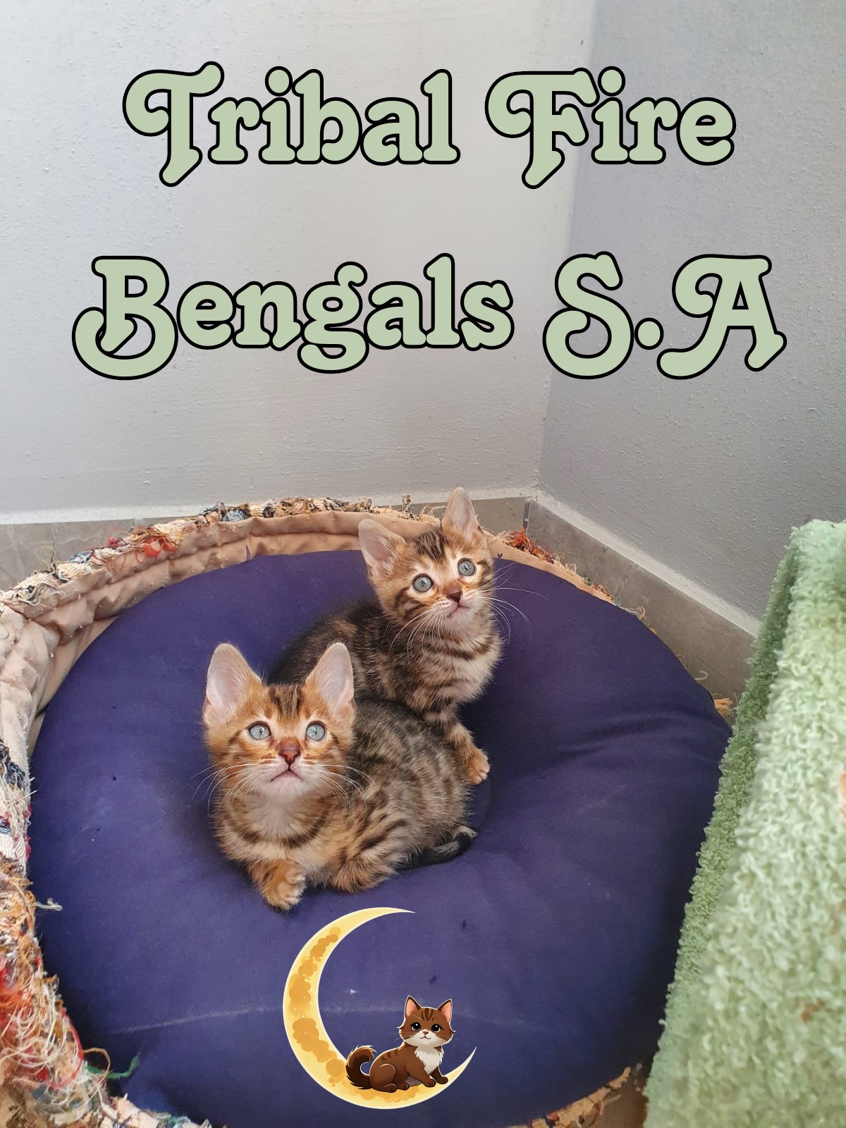 Beautiful brown rosetted bengal kittens for sale, they are CASA registered, neutered, microchiped, all core vacations done. The kittens are 8 weeks old on Saturday and ready for their new homes at 12 & half weeks old. They on a Hills feeding program. You welcome to look at our FB page Tribal Fire Bengals S.A. Where the wild meets domestic.