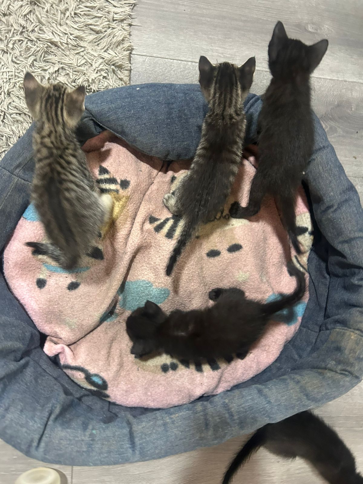 Bengal cross kittens. More details: there is 3x males ans 2x females they are 6 weeks old(Ready at 8 weeks) ,They will be vaccinated and dewormed